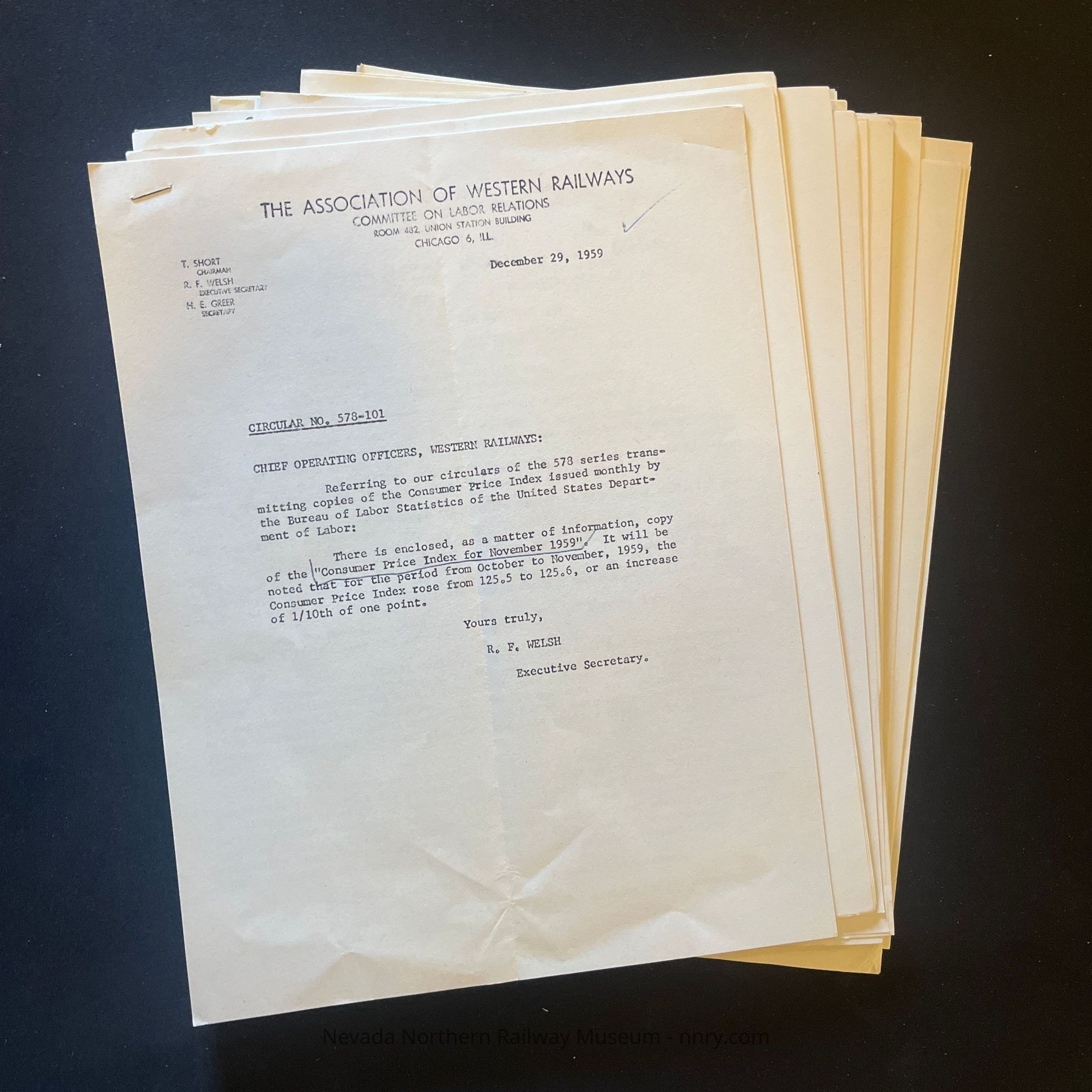 Circulars from the Association of Western Railways regarding the distribution of labor, 1958-1959.