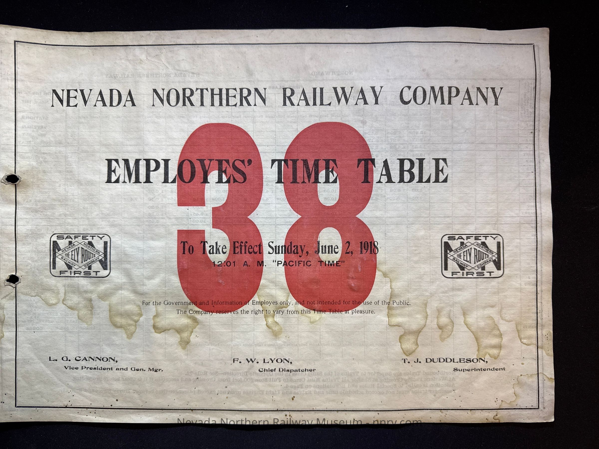 Nevada Northern Railway timetable no. 38, June 2, 1918.
