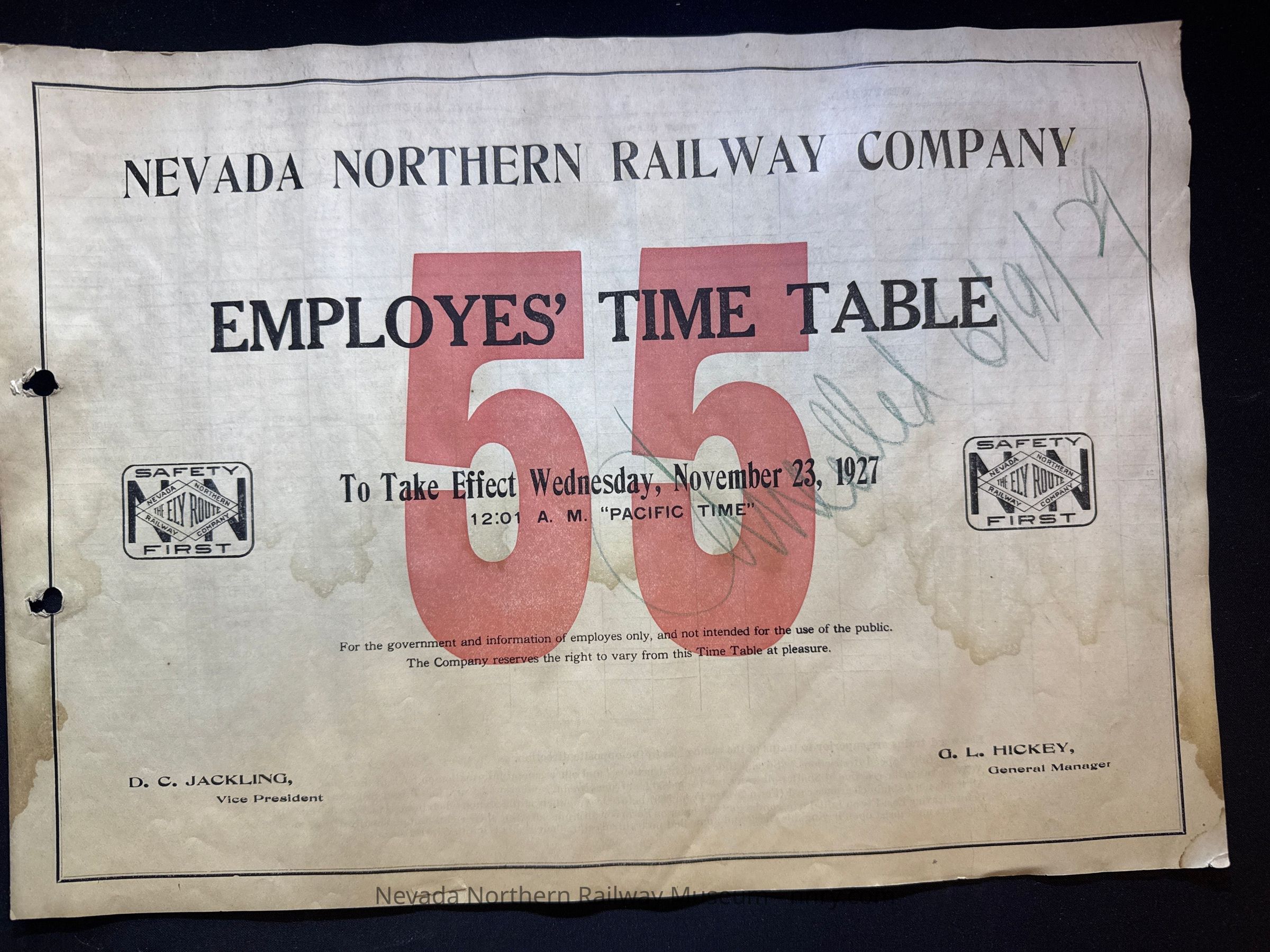 Nevada Northern Railway timetable no. 55, November 23, 1927.