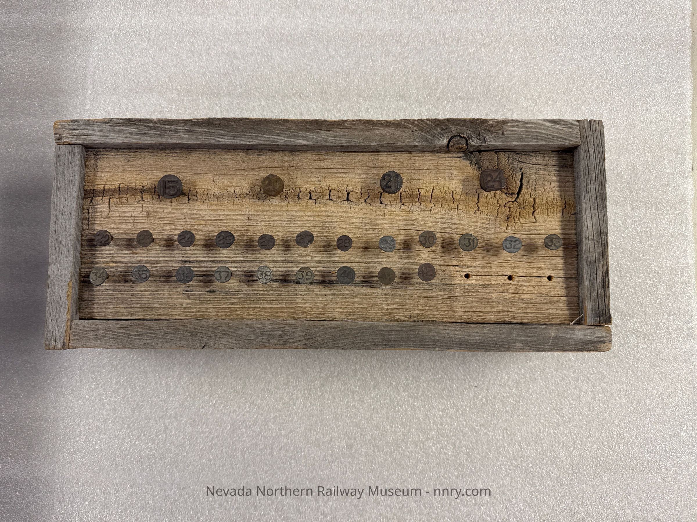 Display block of NNRy date nails from 1915 to 1942, complete set.Acquisition