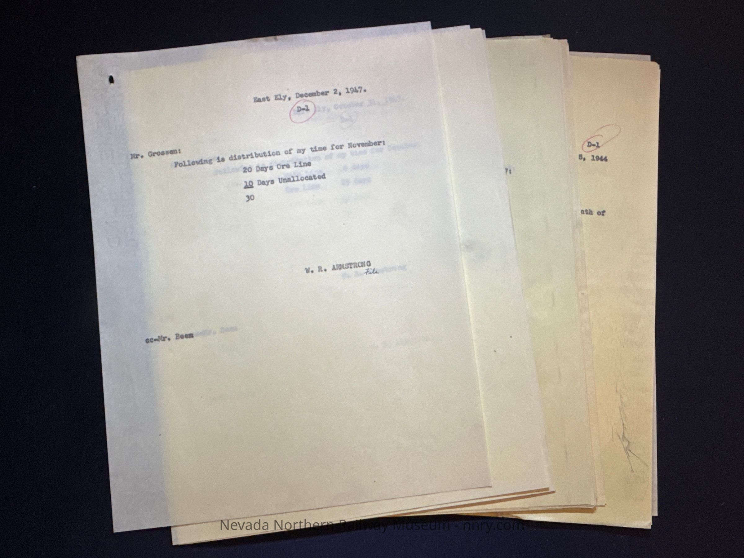 Various correspondence regarding the distribution of wages for the MOW Department, 1944-1947.