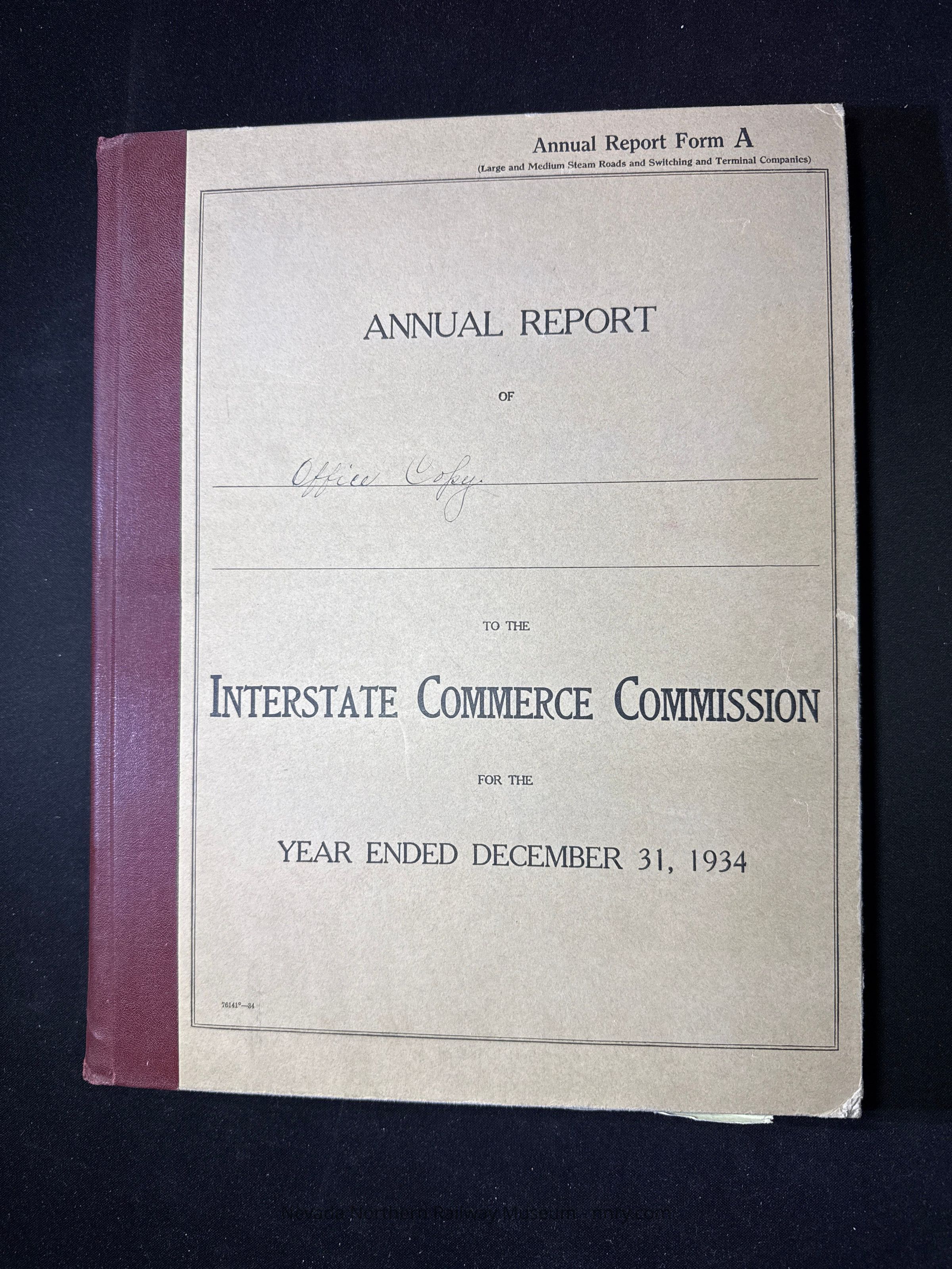 Annual report from the NNRy to the ICC for 1934, includes additional sheet of information between the pages, office file copy for the Auditor's office in East Ely.Creator