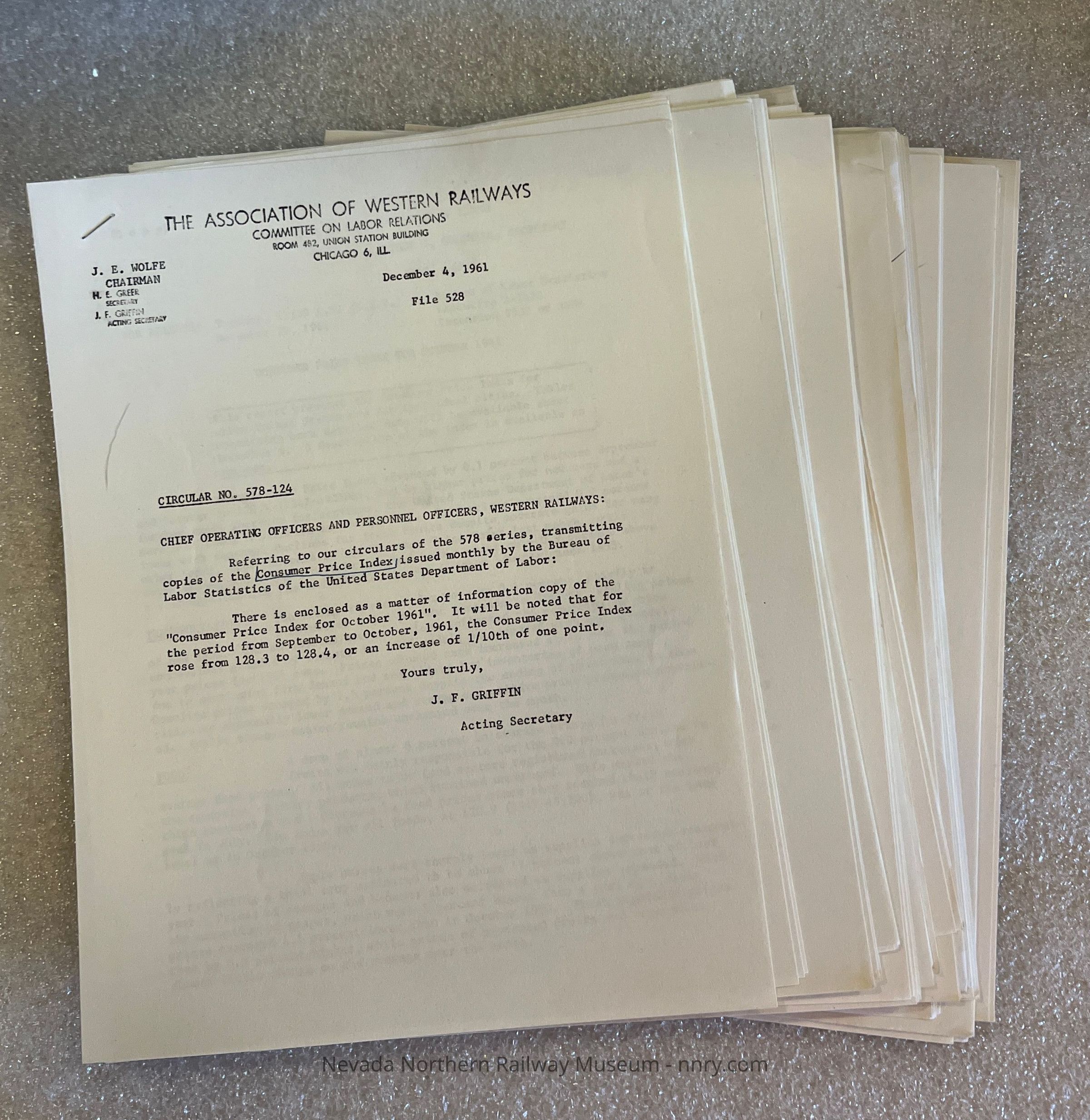 Circulars from the Association of Western Railways regarding the distribution of labor, 1960-1961.