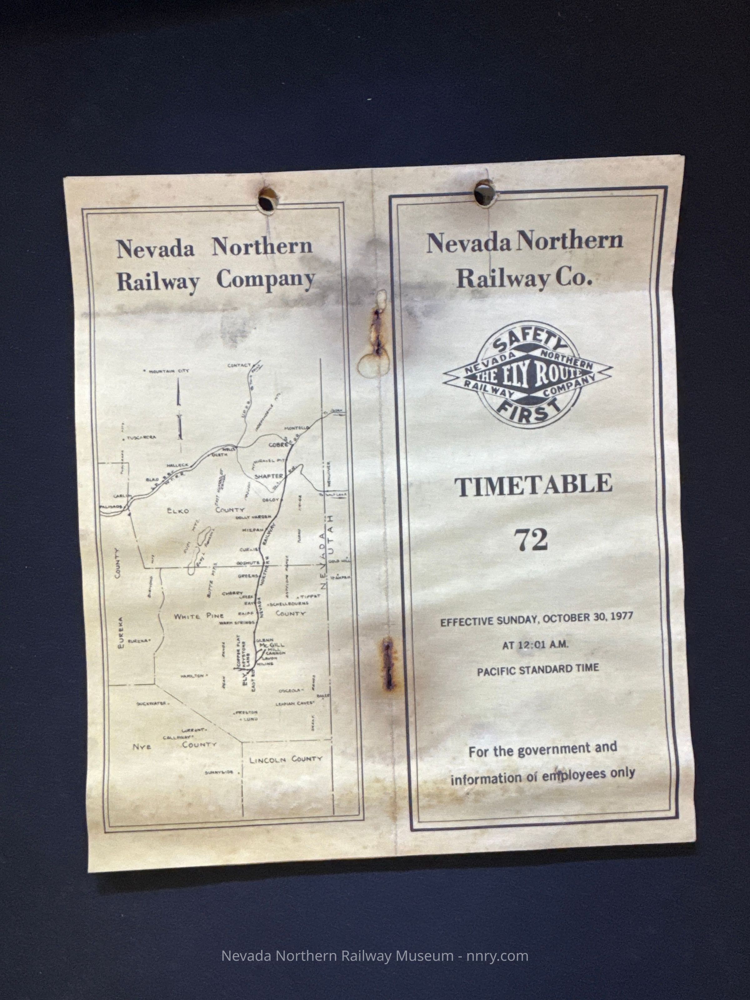 Nevada Northern Railway timetable no. 72, October 30, 1977.