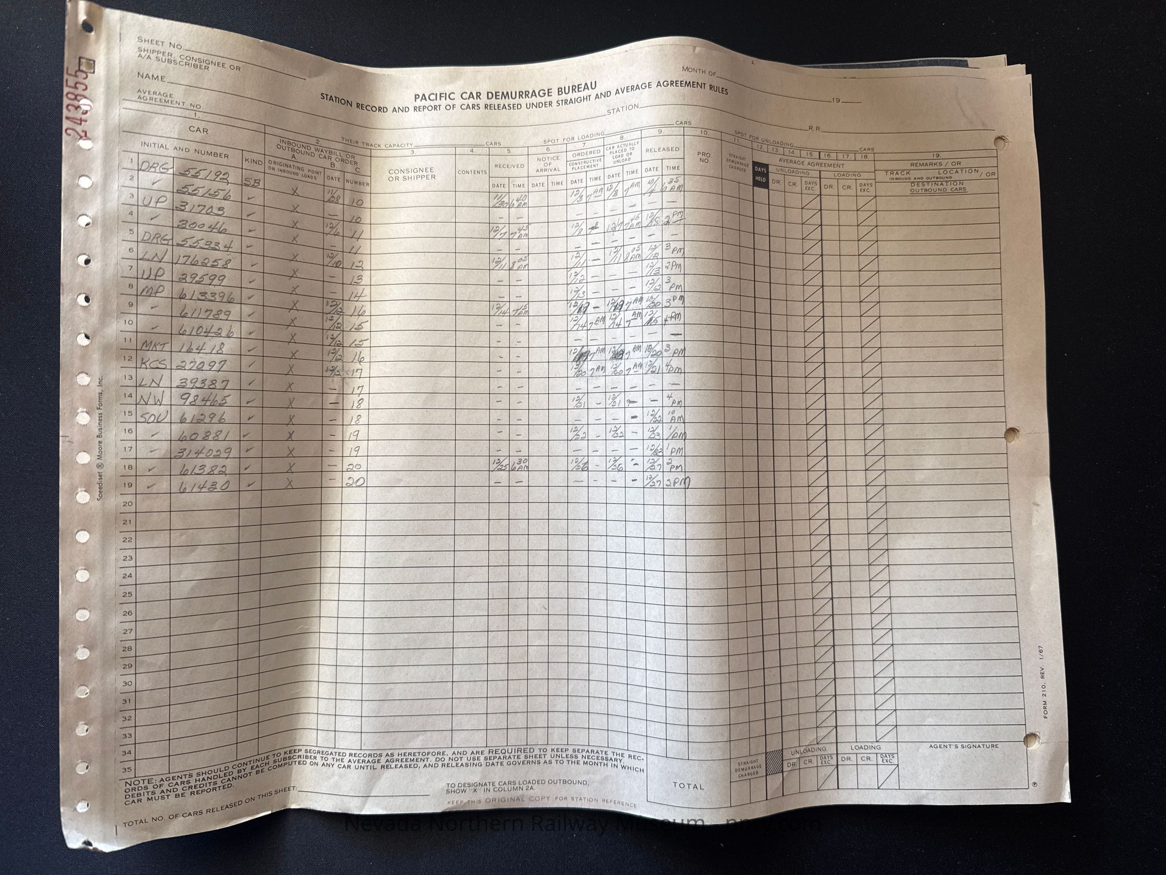 Pacific Car Demurrage Bureau, Nevada Northern RailwayDate(s) of Creation
