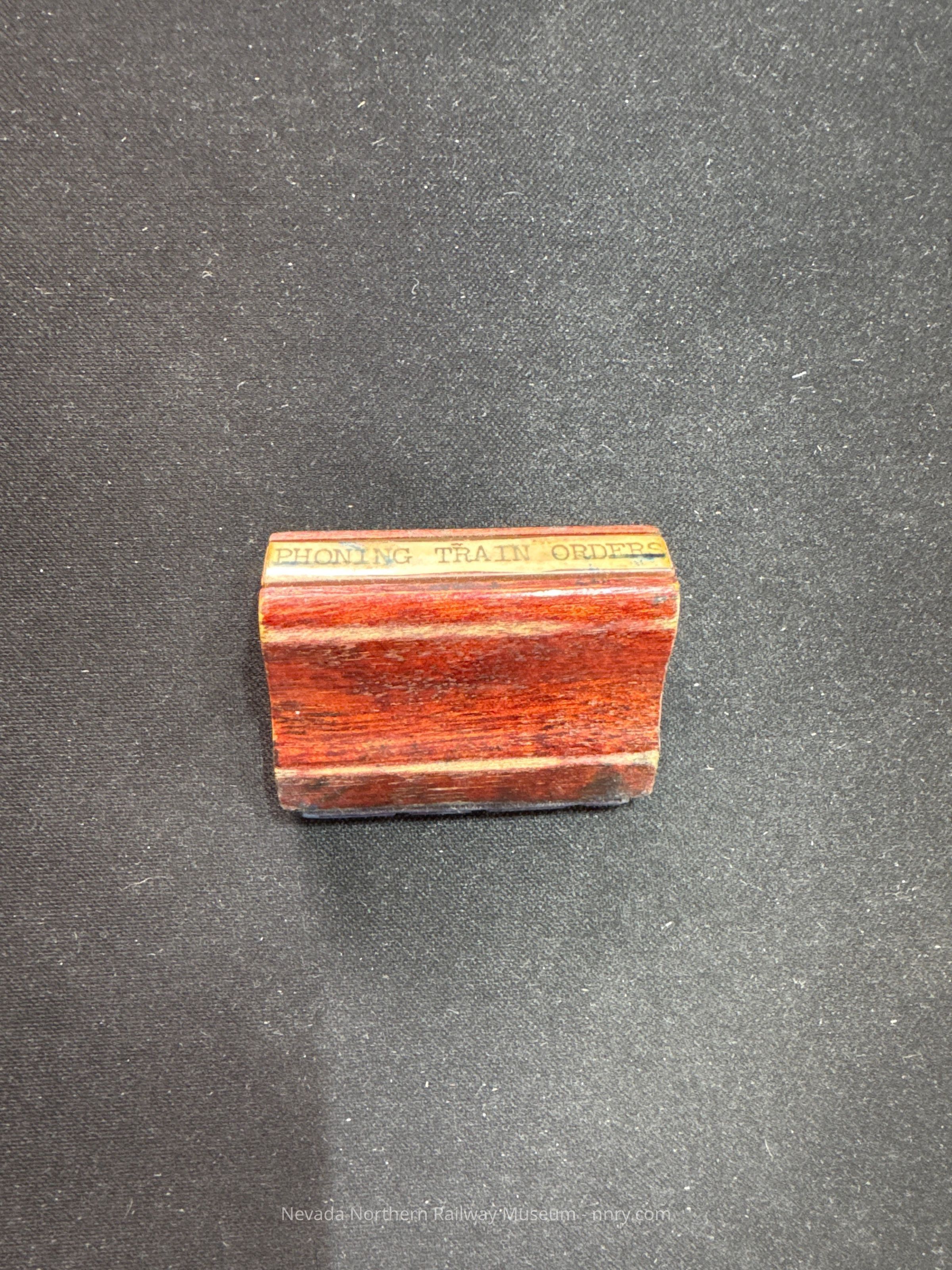 Rubber stamp with the impression "PHONING TRAIN ORDERS."Category