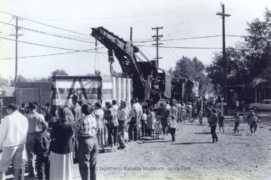 Wrecking Crane "A" and locomotive #401 at the 50th Anniversary Celebrations, September 1956.