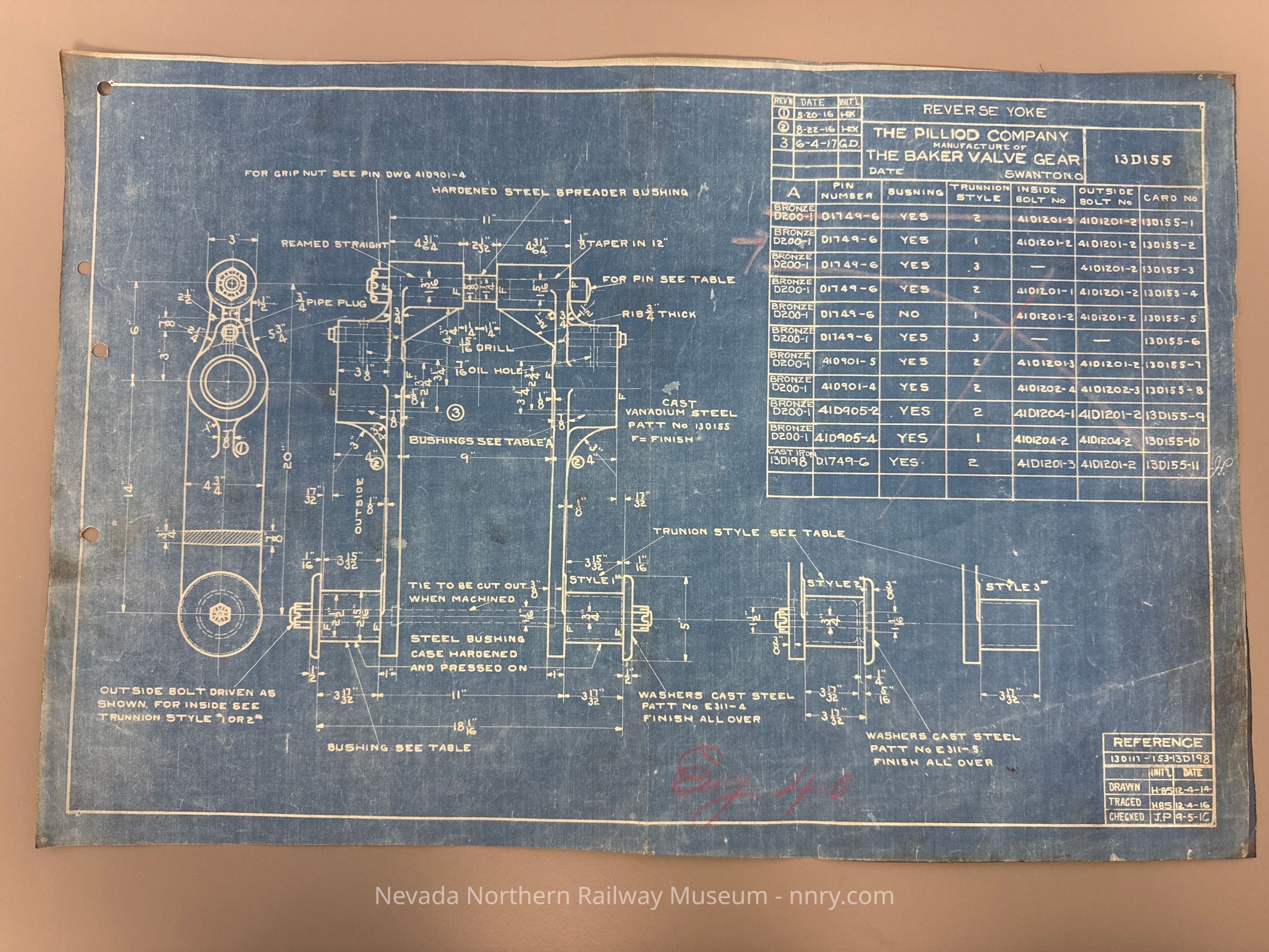 Blueprint for the reverse yoke of the Baker valve gear on locomotive #40, December 4, 1914.