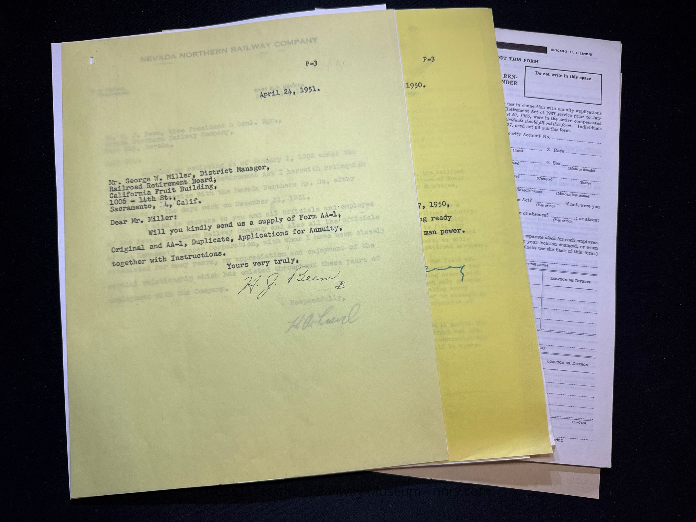 Various correspondence regarding employee pensions under Railroad Retirement, 1950-1951.