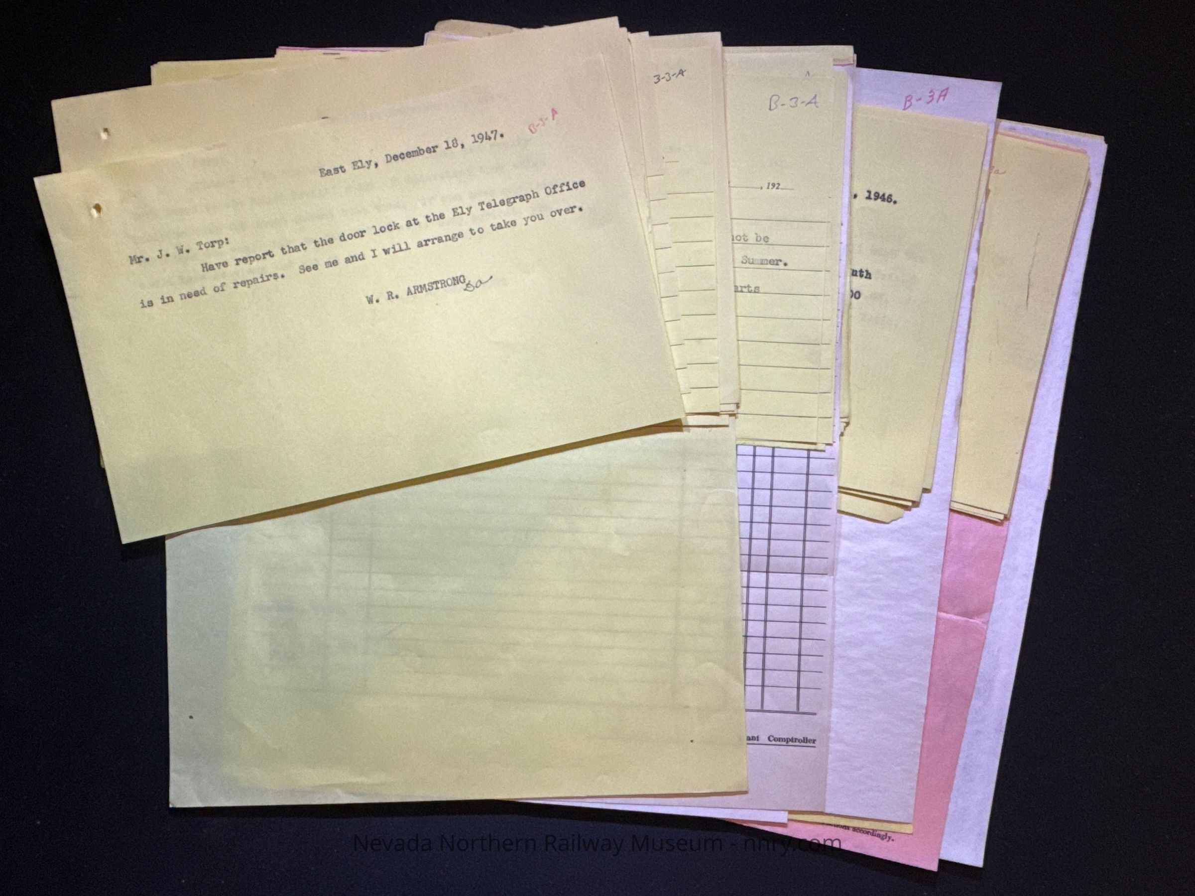Memos regarding the materials, time and crew for painting the Kimberly Depot, 1947.Creator