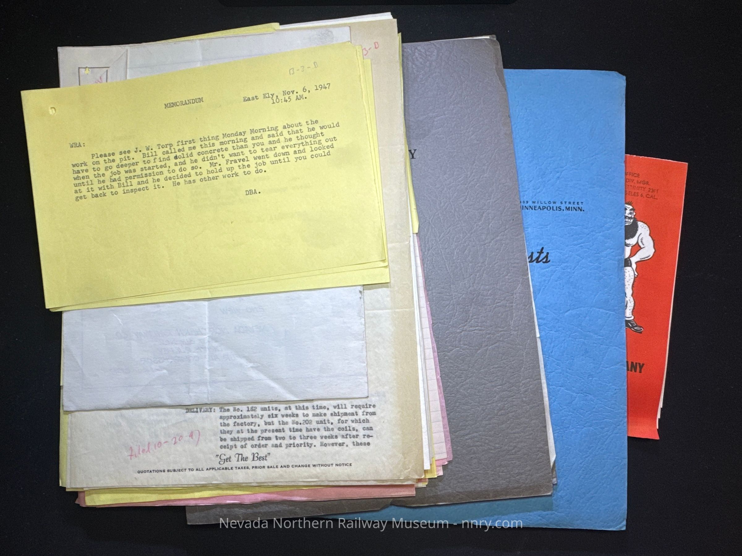 Packet of information on water treatment provided by the Flox Company, including information on the water treatment balls located in the enginehouse, packet includes several brochures and pieces of advertisements, 1944.Creator