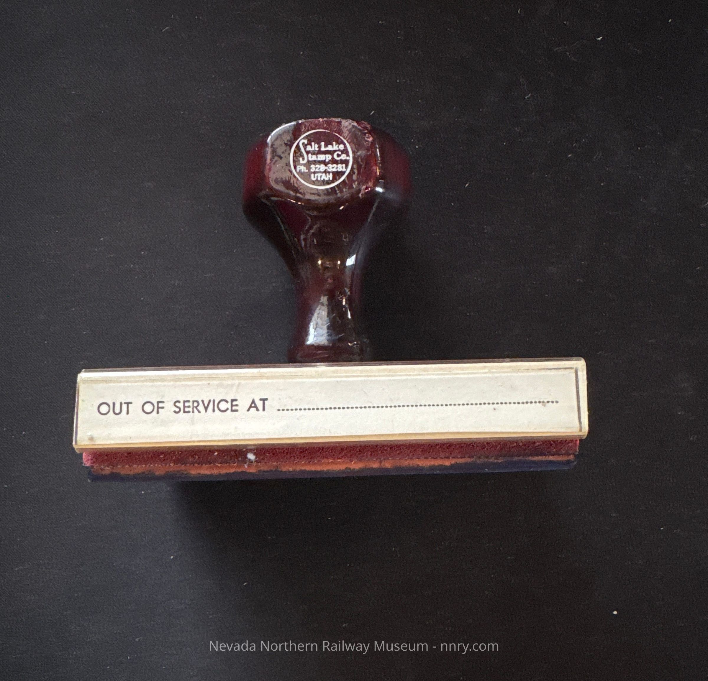 Rubber stamp with the impression “Out of service at; From; Account of; And will not be used until inspection report is filed; Date.”Category