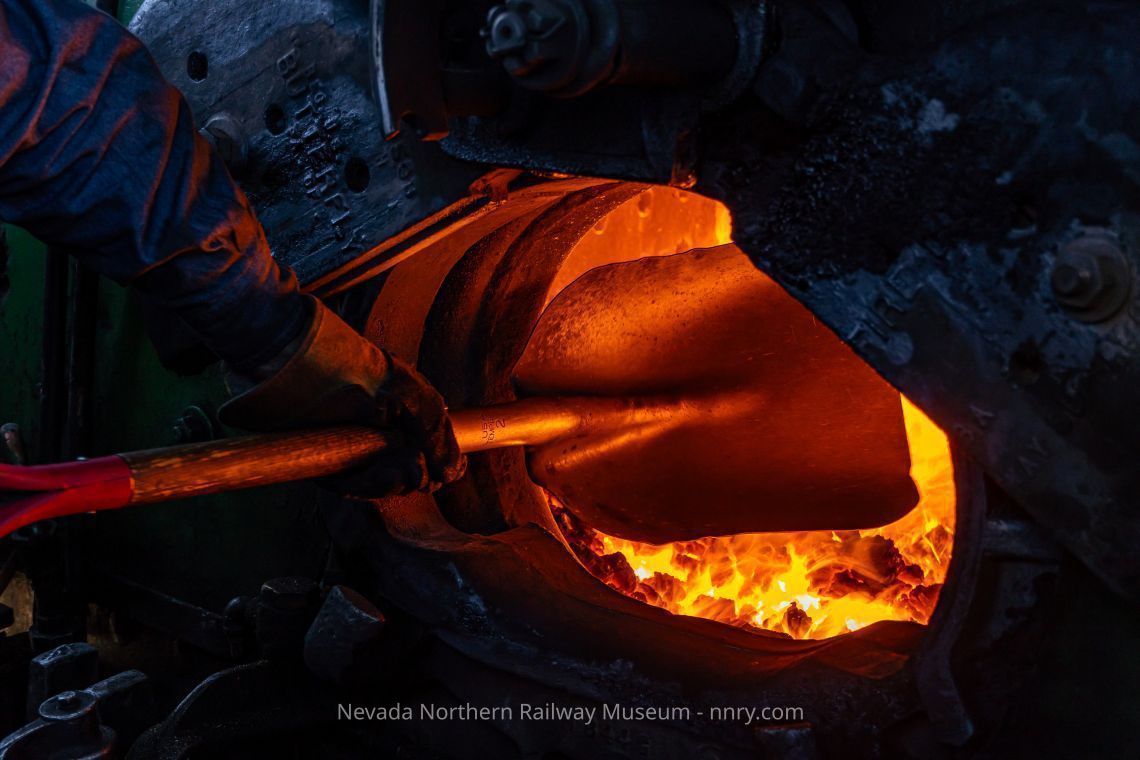 Fireman Vince Whiteley firing locomotive #93, February 2024.