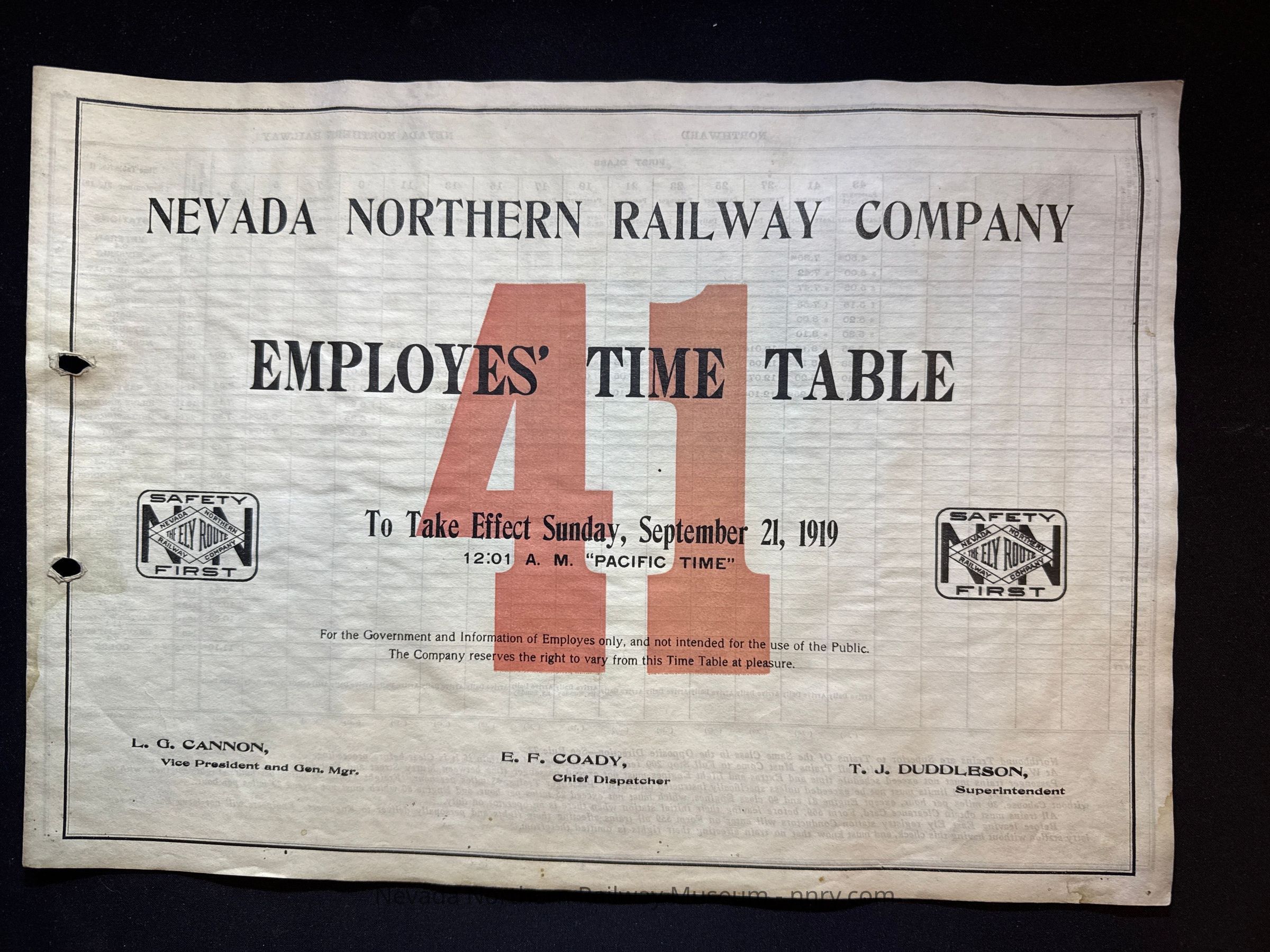 Nevada Northern Railway timetable no. 41, September 21, 1919.