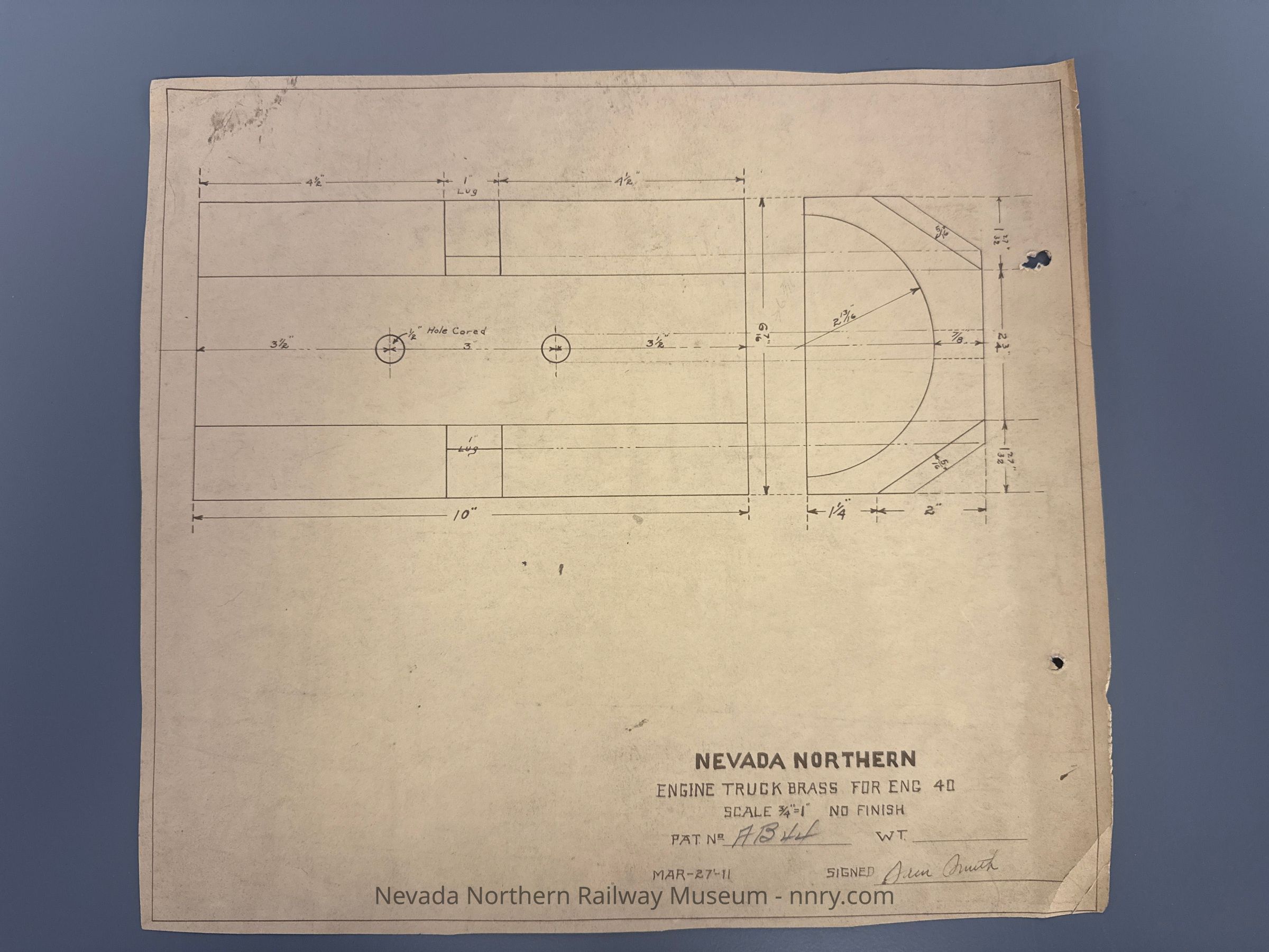 Blueprint for the engine truck brass on locomotive #40, March 27, 1911.