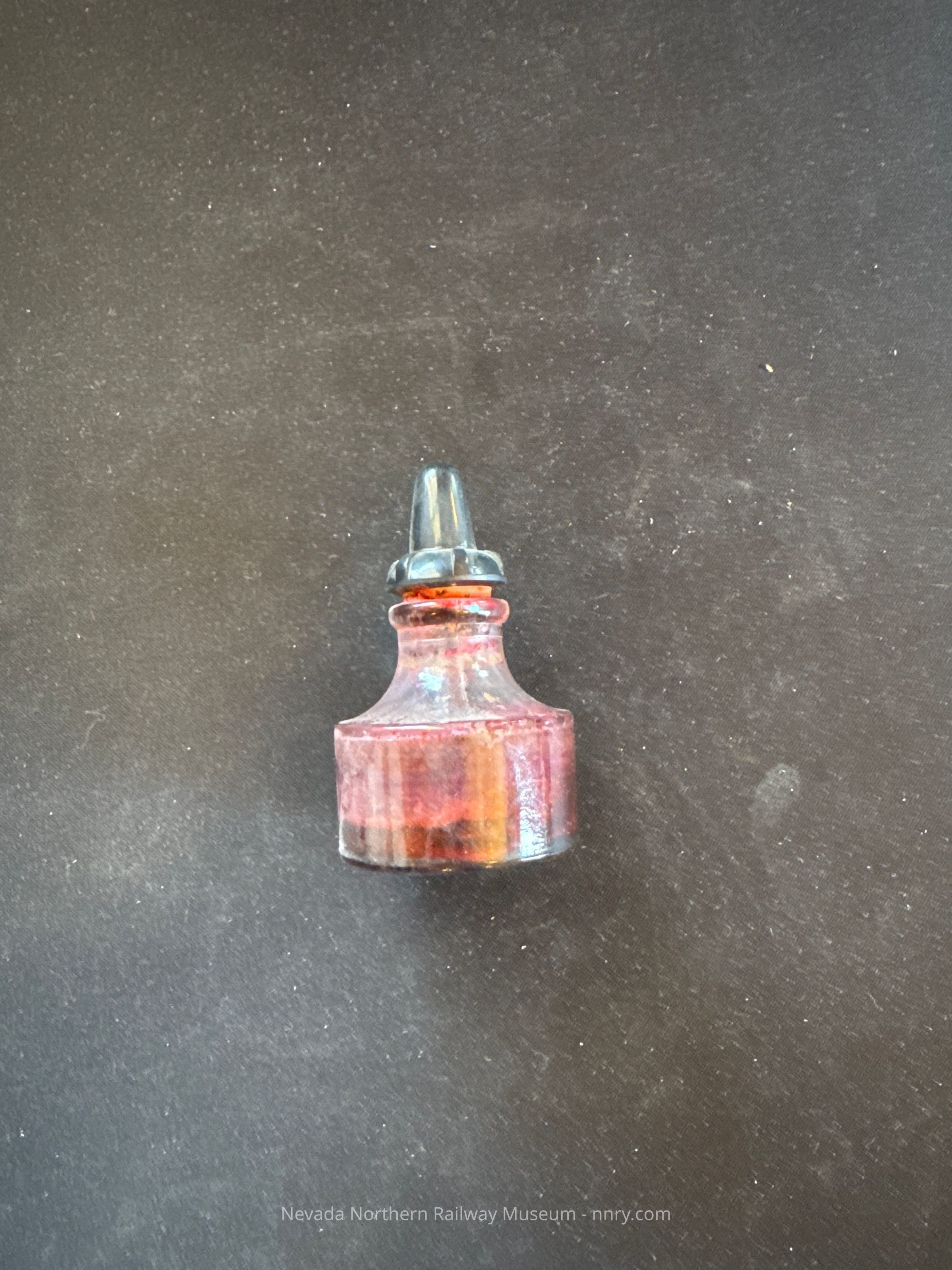 Ink bottle for red ink, no label.