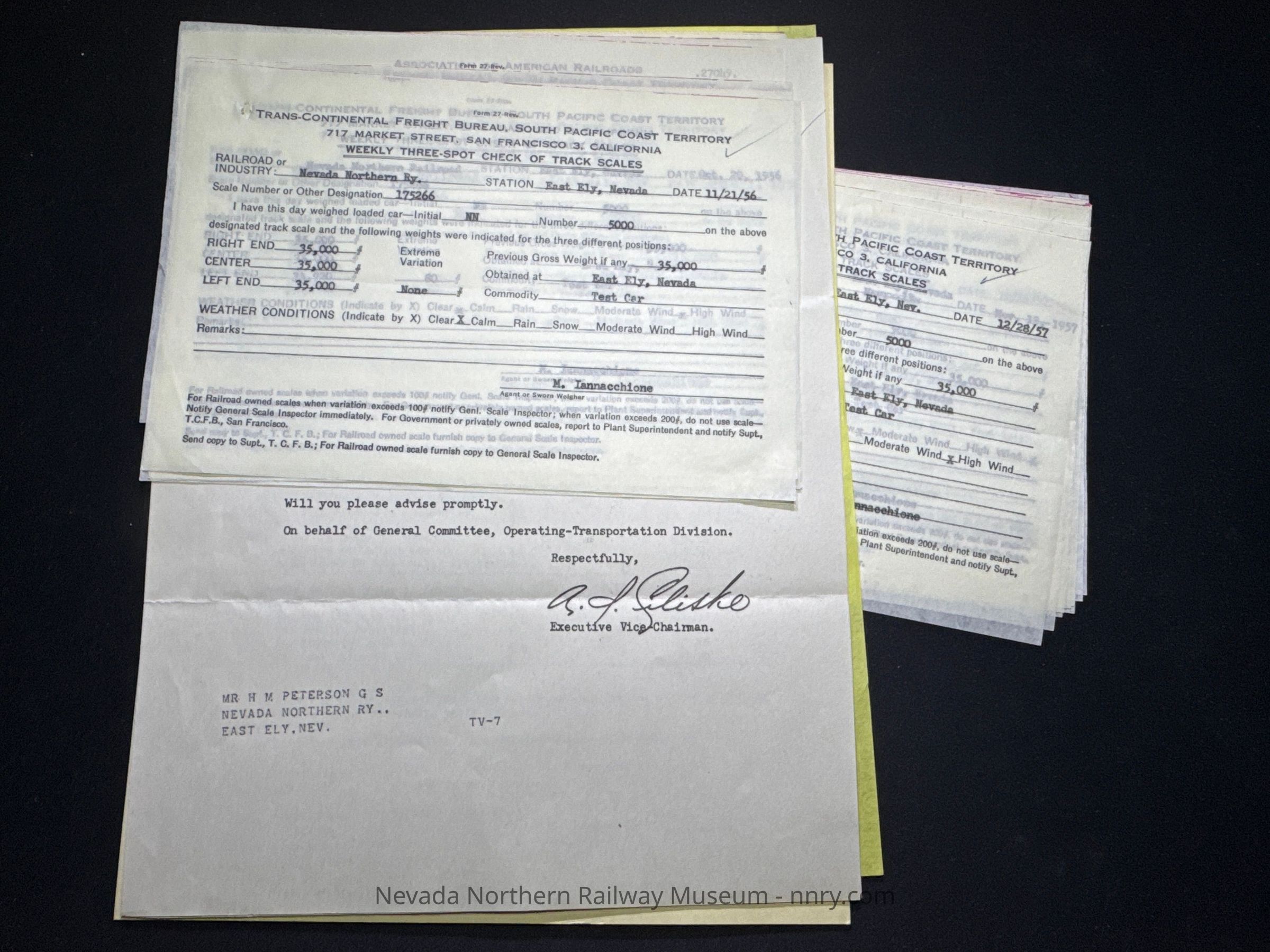 Reports and certificates related to the scales and scale tests, 1956-1957.