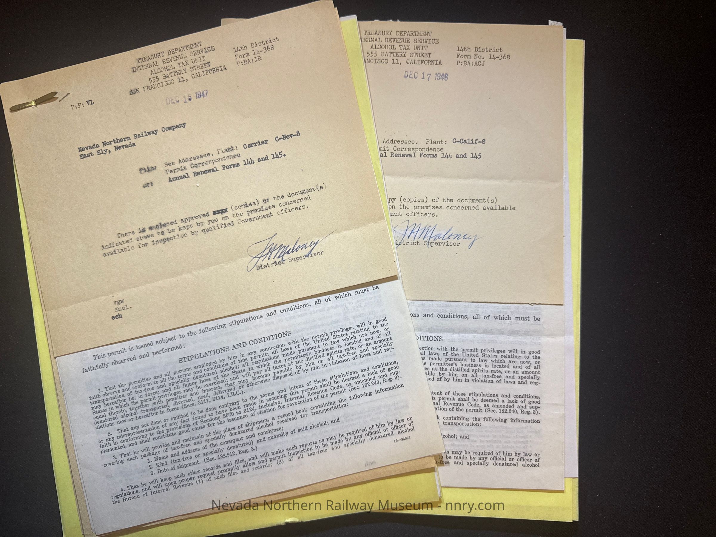 Various correspondence regarding liquor permits issued to the railroad, 1946-1947.
