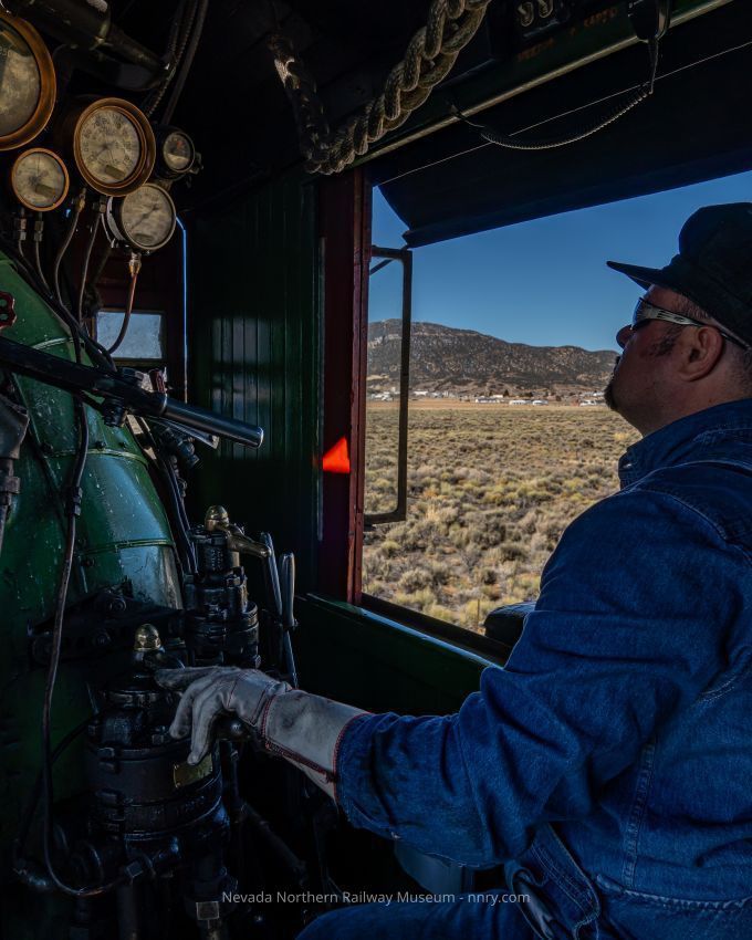 Engineer Jim Montague in locomotive #93, February 2024.