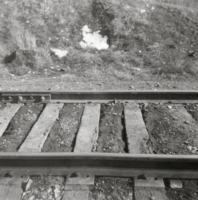Taken in cut west of tunnel. Taken to show rail anchor not up against tie. Shows lack of planning of track patrolman's work and supervisor, from a report by Harold E. Grier, 1967.Photograph Details
