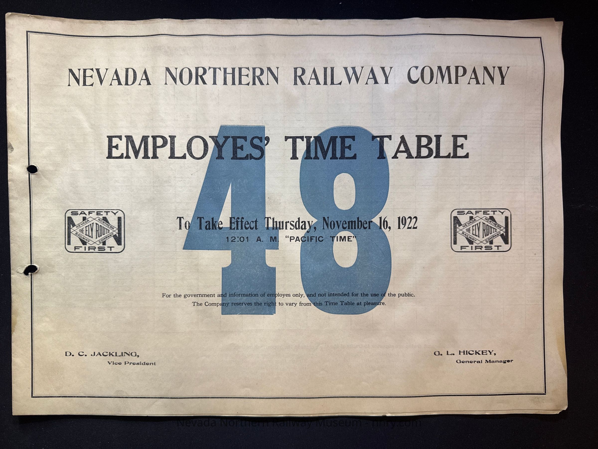 Nevada Northern Railway timetable no. 48, November 16, 1922.