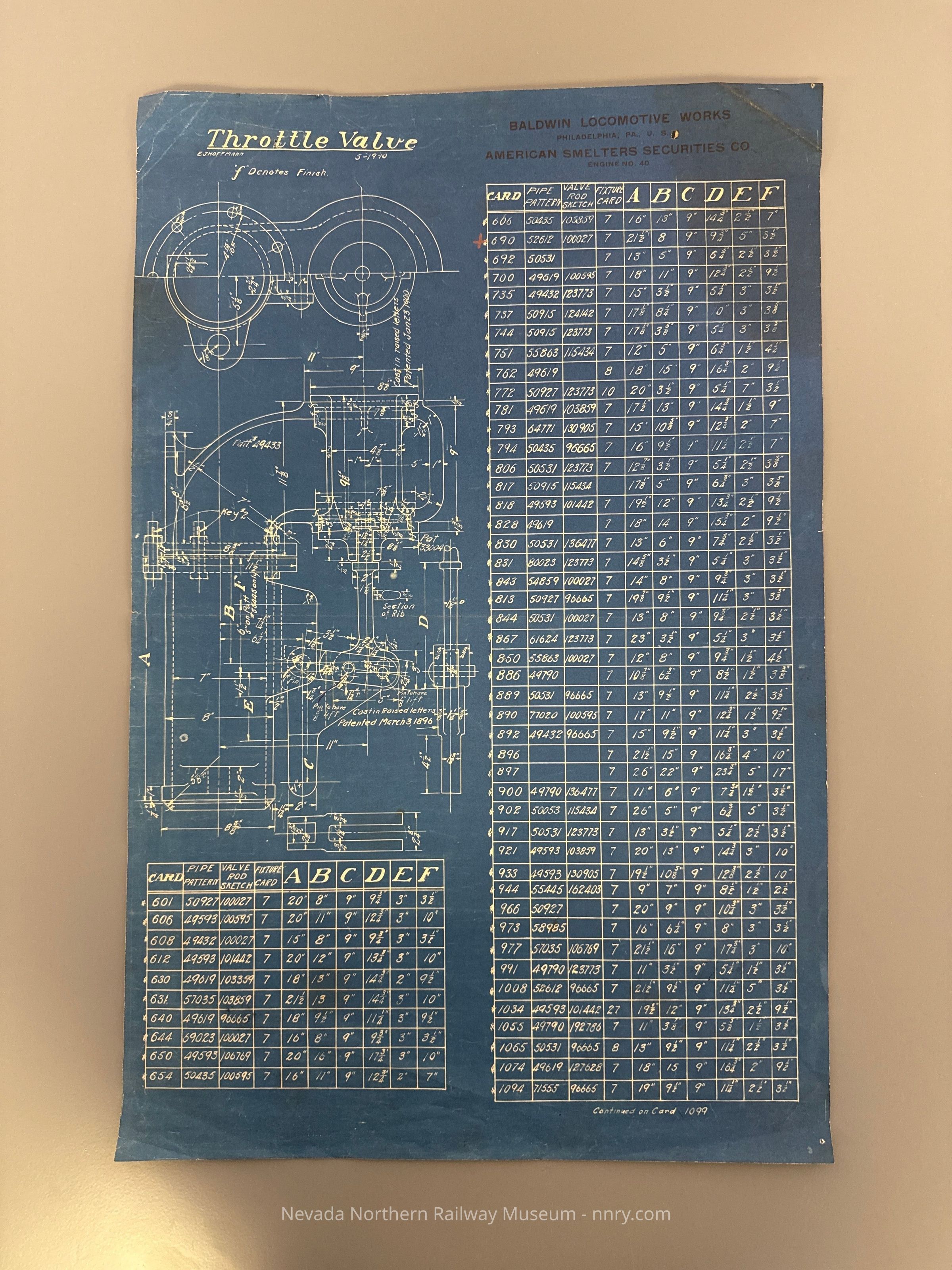 Blueprint for the throttle valve of locomotive #40, May 19, 1910.