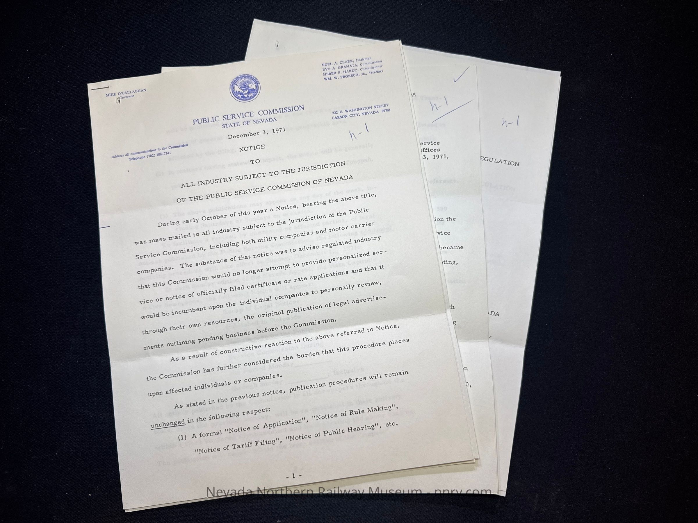 Various correspondence related to the Nevada Public Service Commission, 1970-1971.