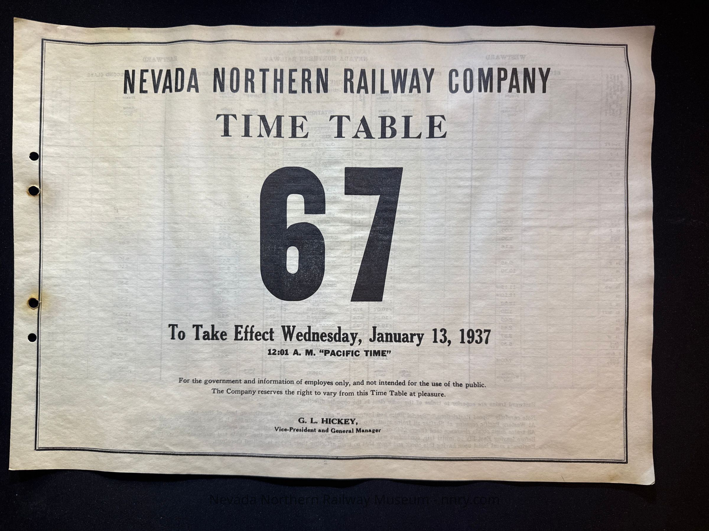 Nevada Northern Railway timetable no. 67, January 13, 1937.