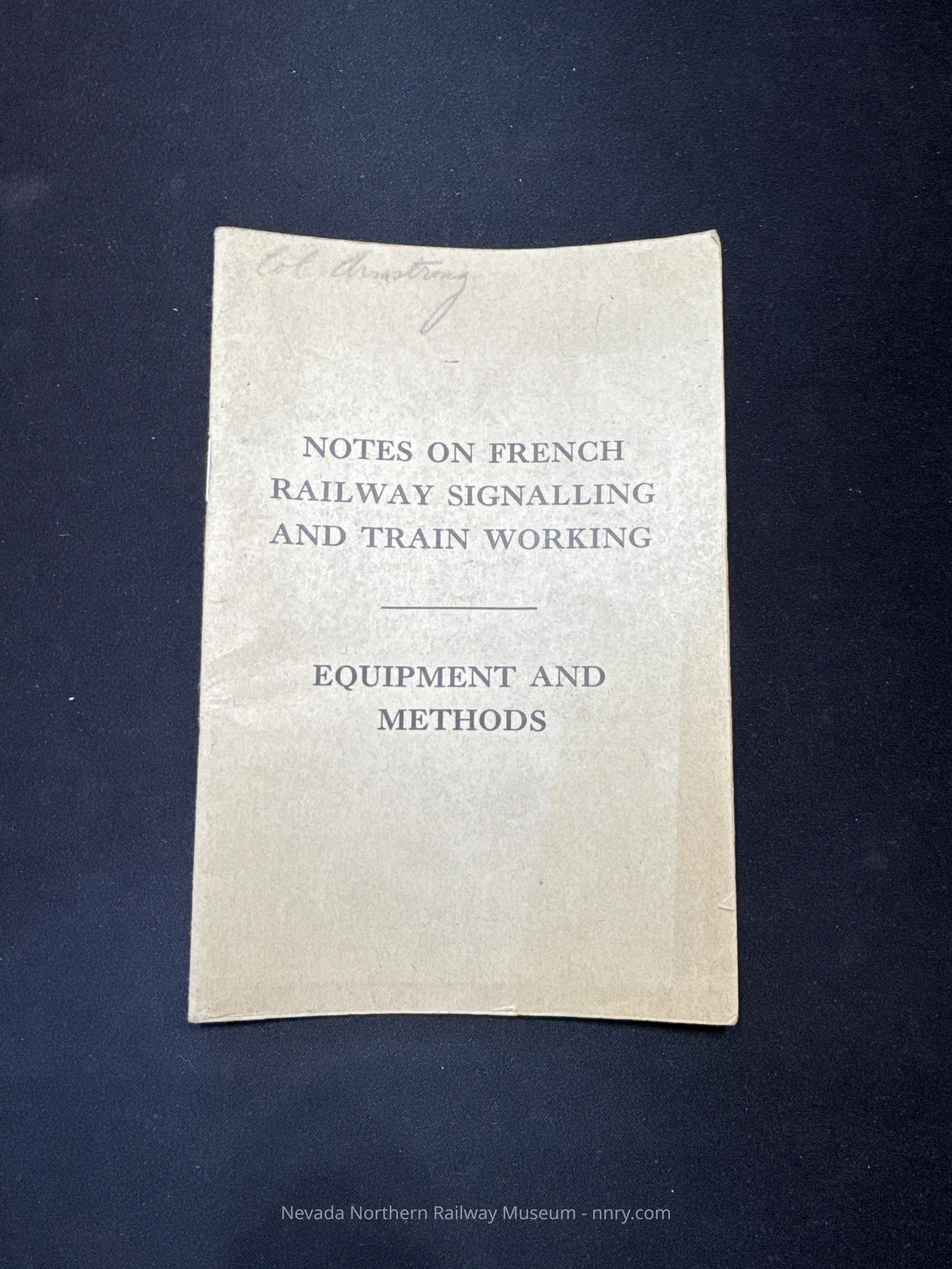 Booklet on French Railway signaling and train operations, brought back from the war by W.R. Armstrong, NNRy Chief Engineer.
