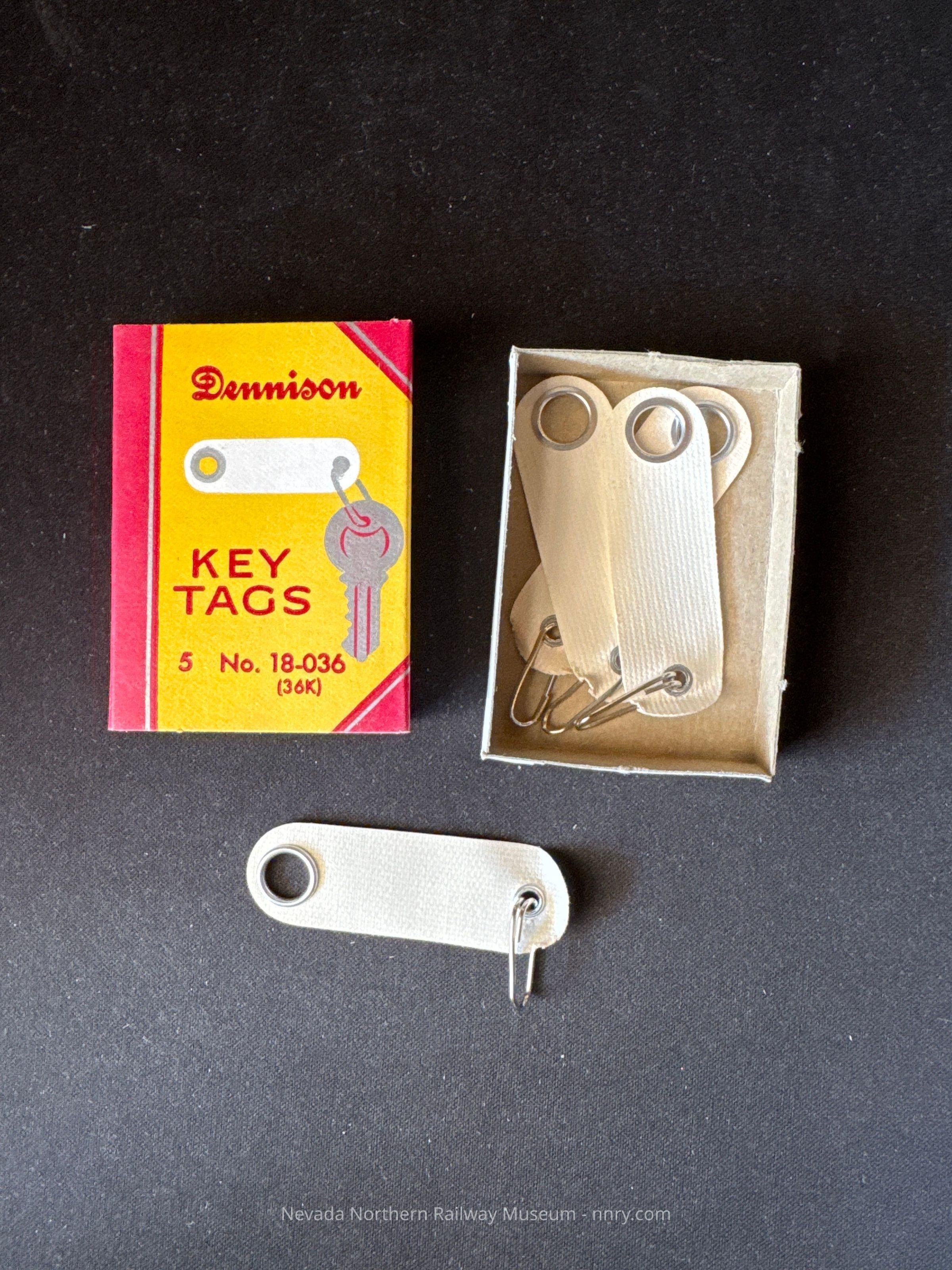 Box of Dennison key tags, no. 18-036, with four tags.Category