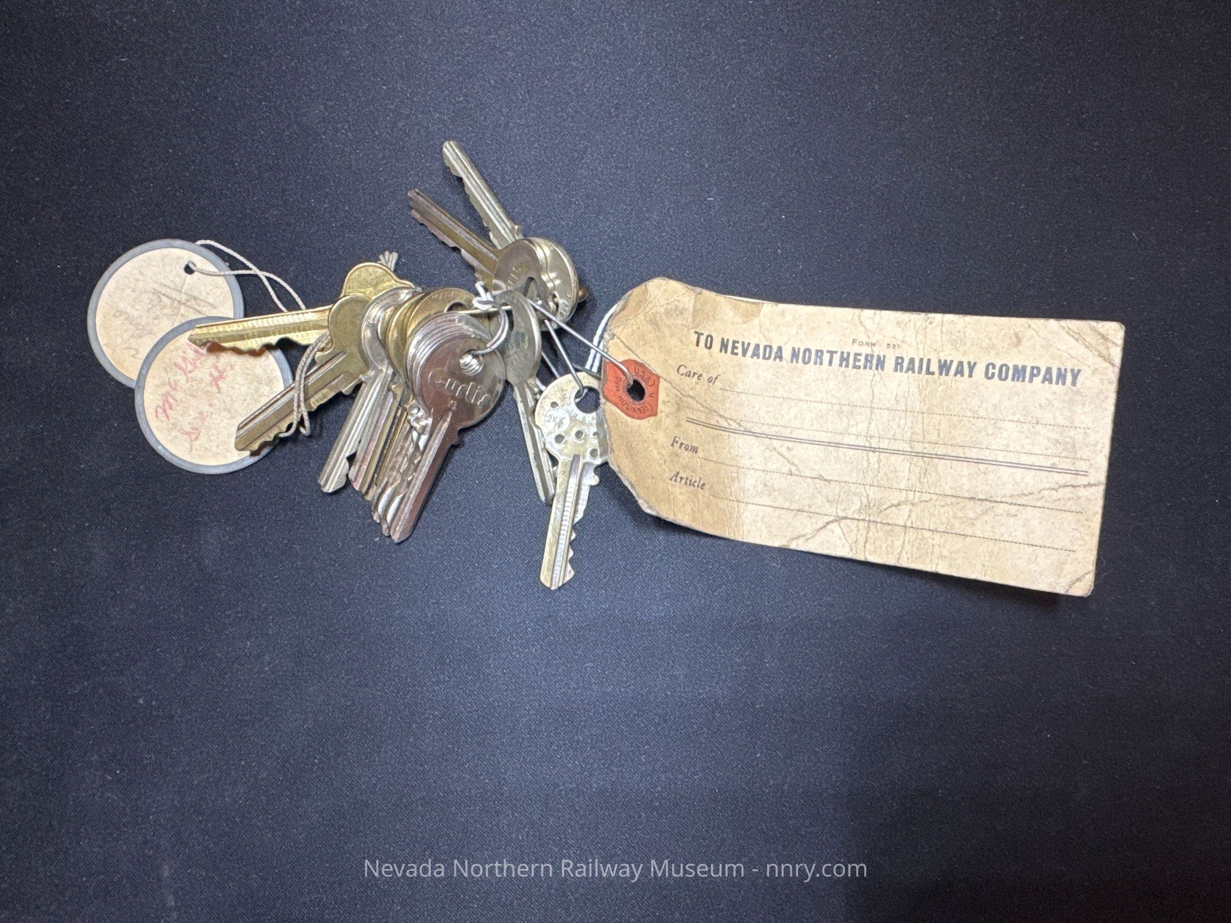 Ring of office keys including keys for the McGill Section House and the ore line diesel cabs.