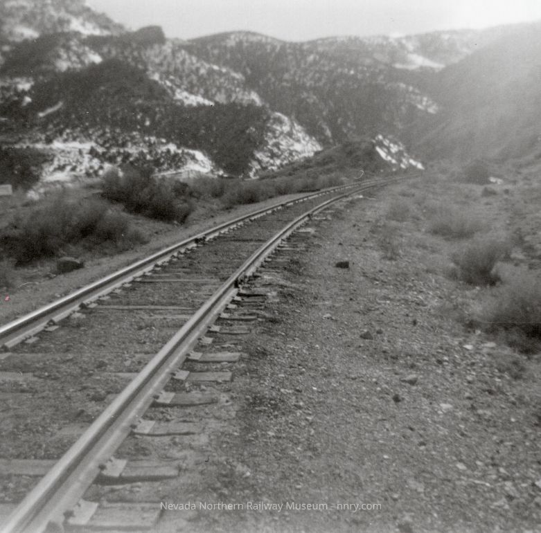 Fill just west of cut above, light spots on right side of track are mud areas even on a fill, from a report by Harold E. Grier, 1967.Photograph Details