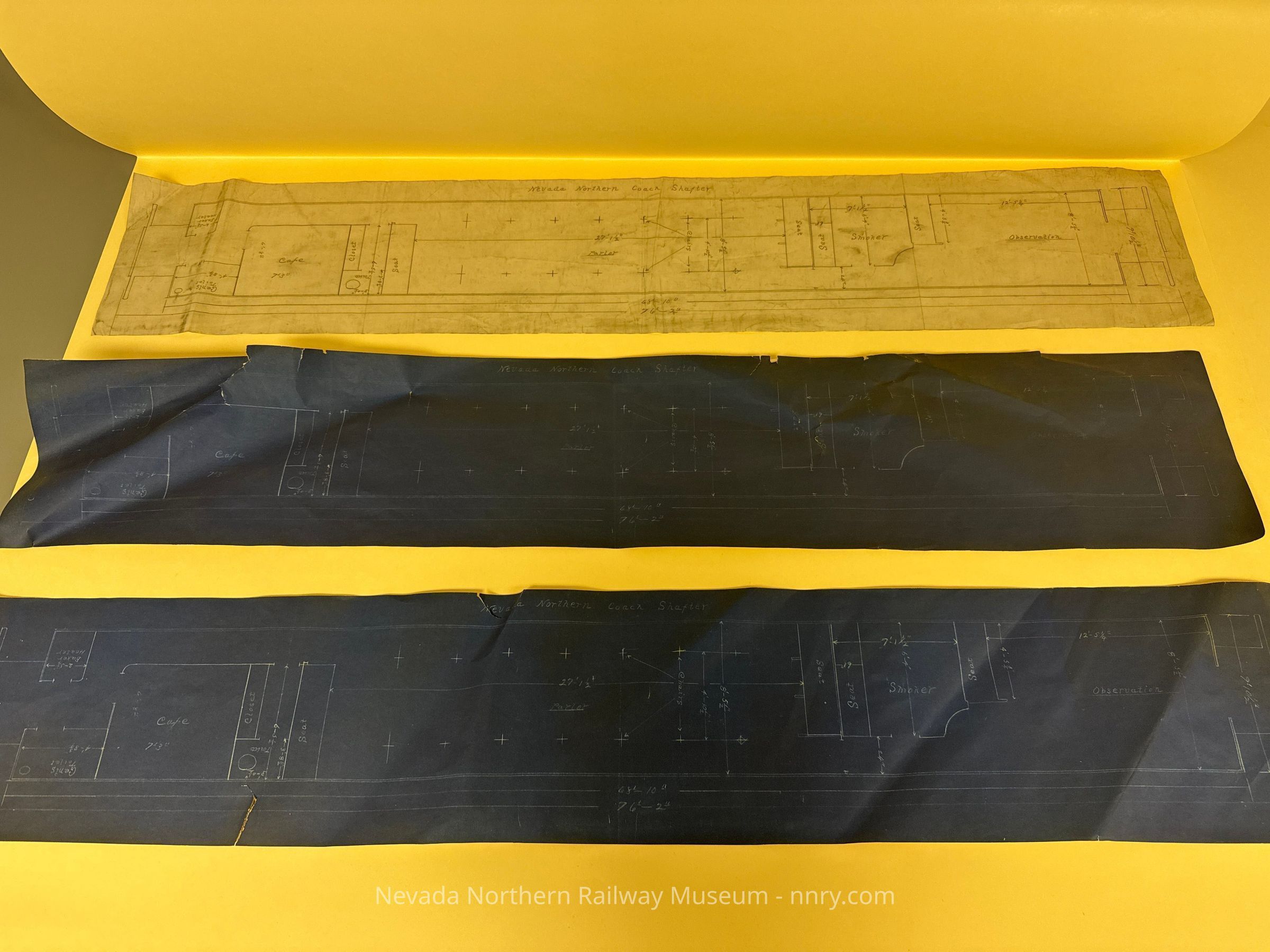 Floorplan of the parlor car "Shafter," circa 1917. Three (3) copies, two blueprint, one black and white.