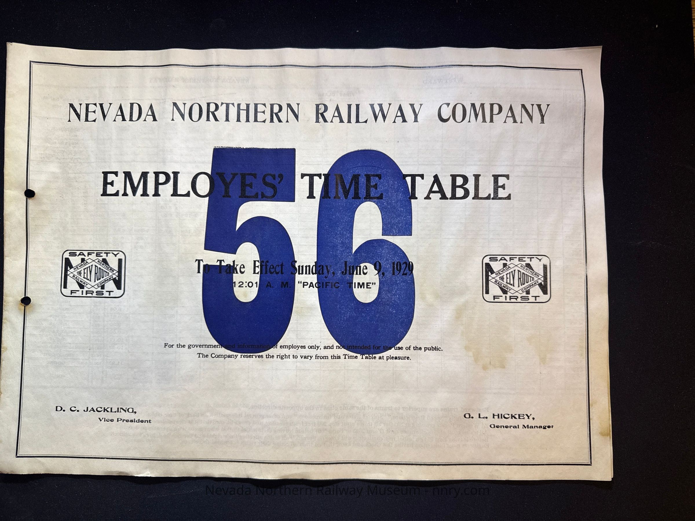 Nevada Northern Railway timetable no. 56, June 9, 1929.