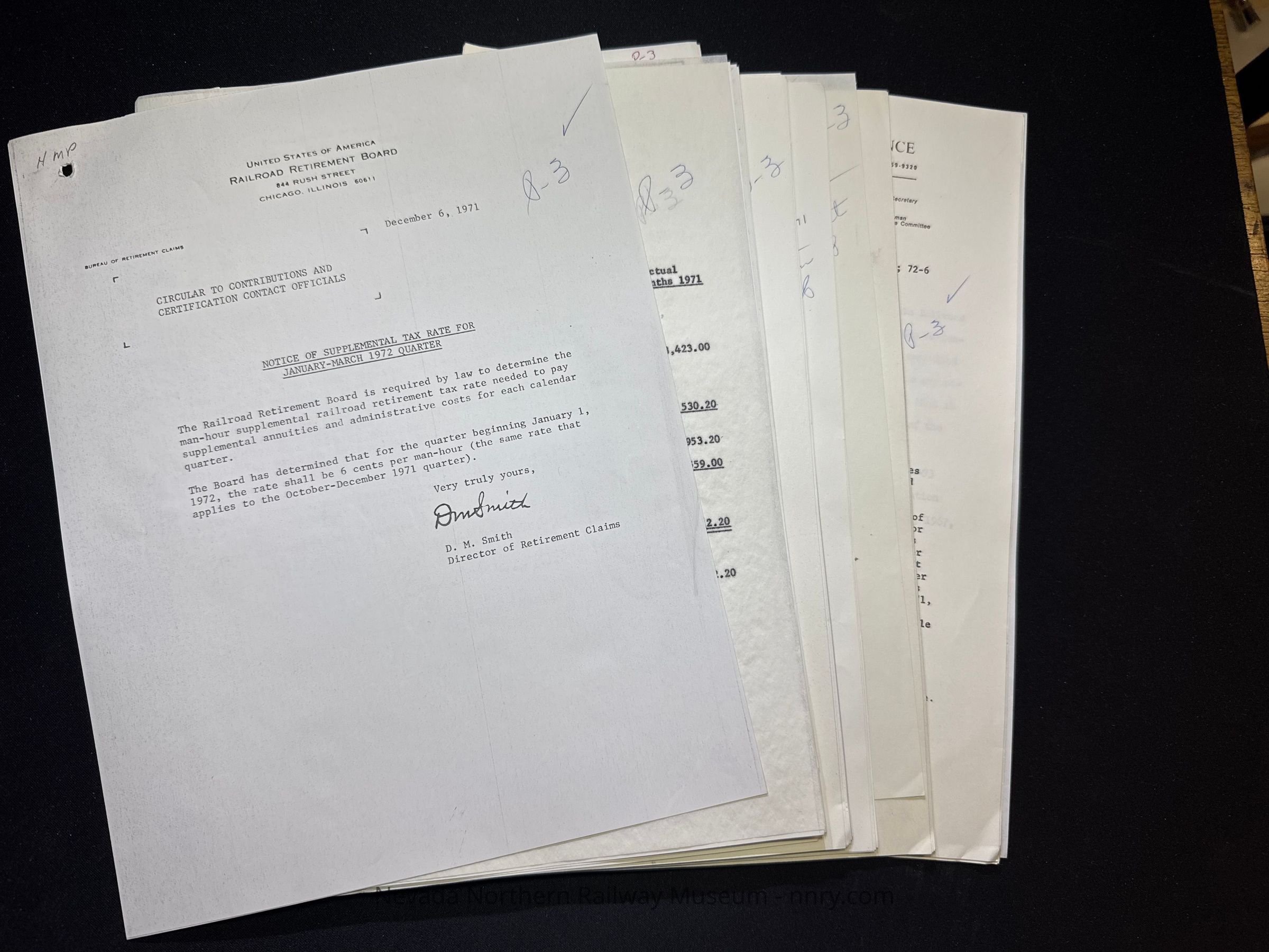 Various correspondence related to pensions for employees under the Railroad Retirement Plan, 1971.Creator