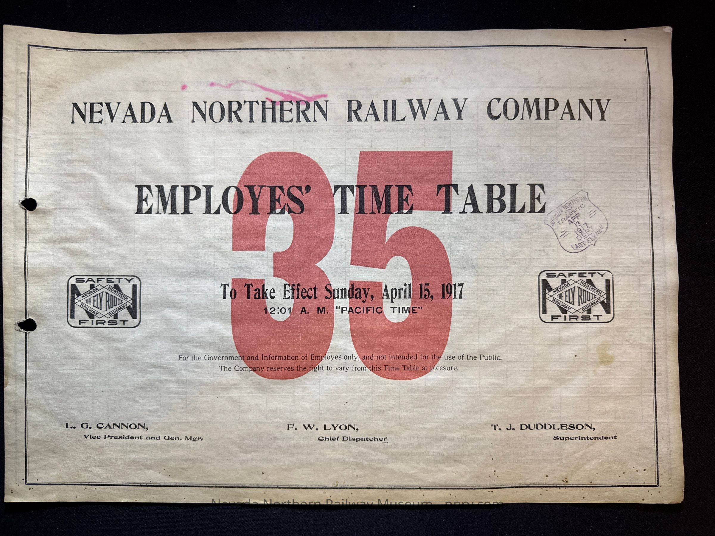 Nevada Northern Railway timetable no. 35, April 15, 1917.