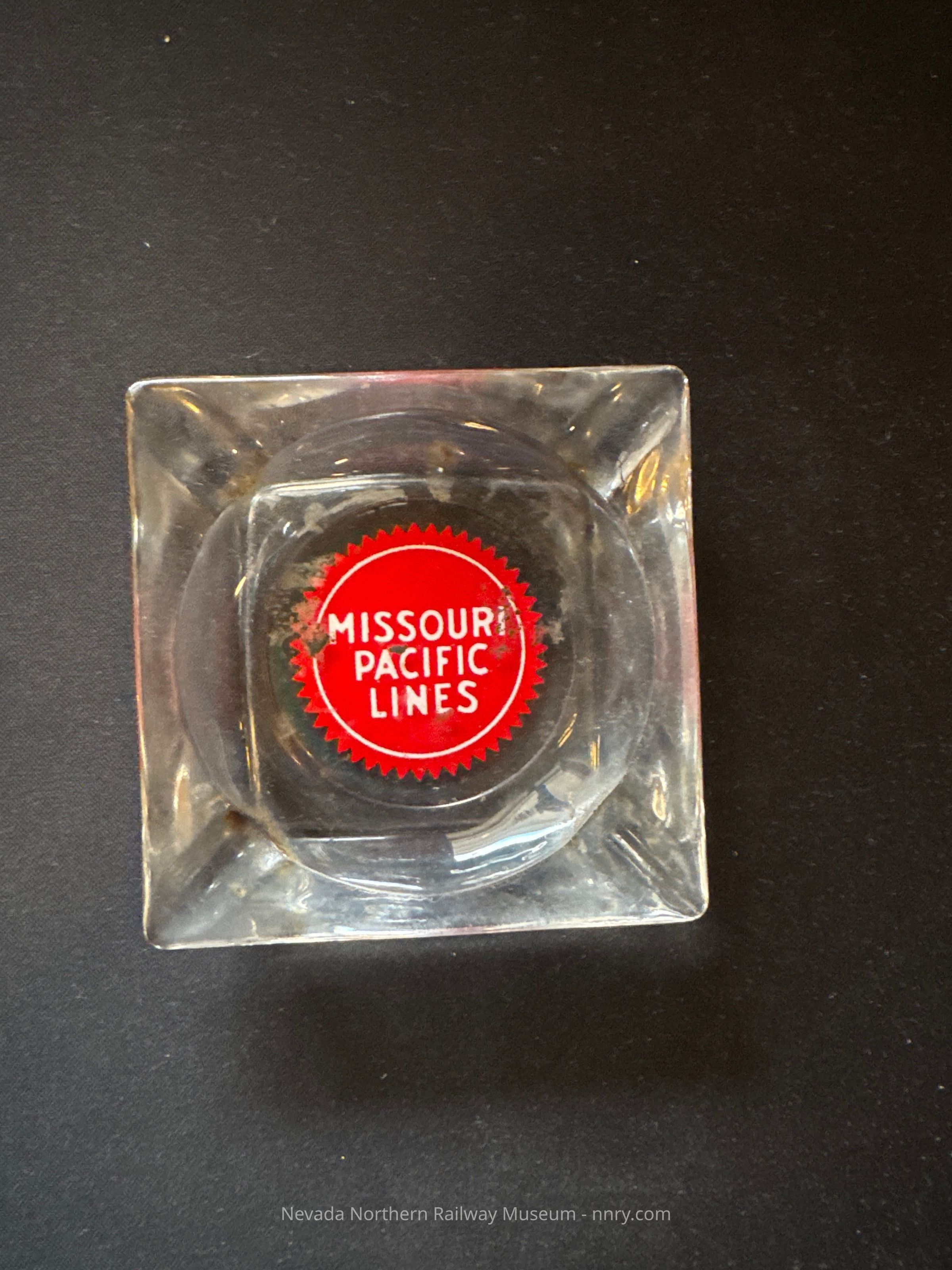 Clear ashtray from the Missouri Pacific Lines, found in historic box 88.Dimensions