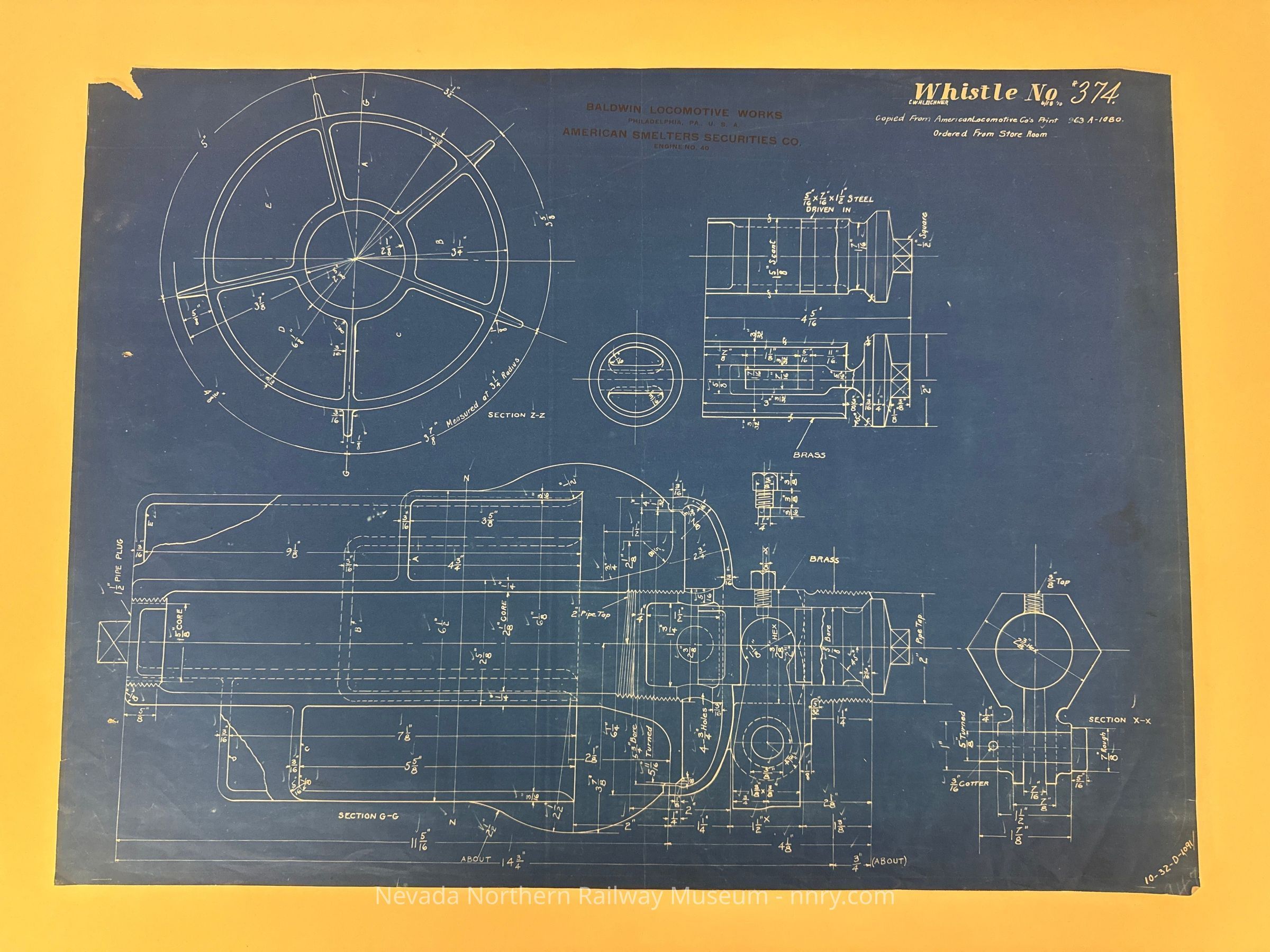 Blueprint for the whistle on locomotive #40, June 18, 1910.