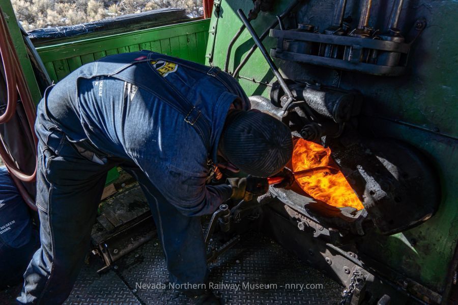 Fireman Vince Whiteley firing locomotive #93, February 2024.