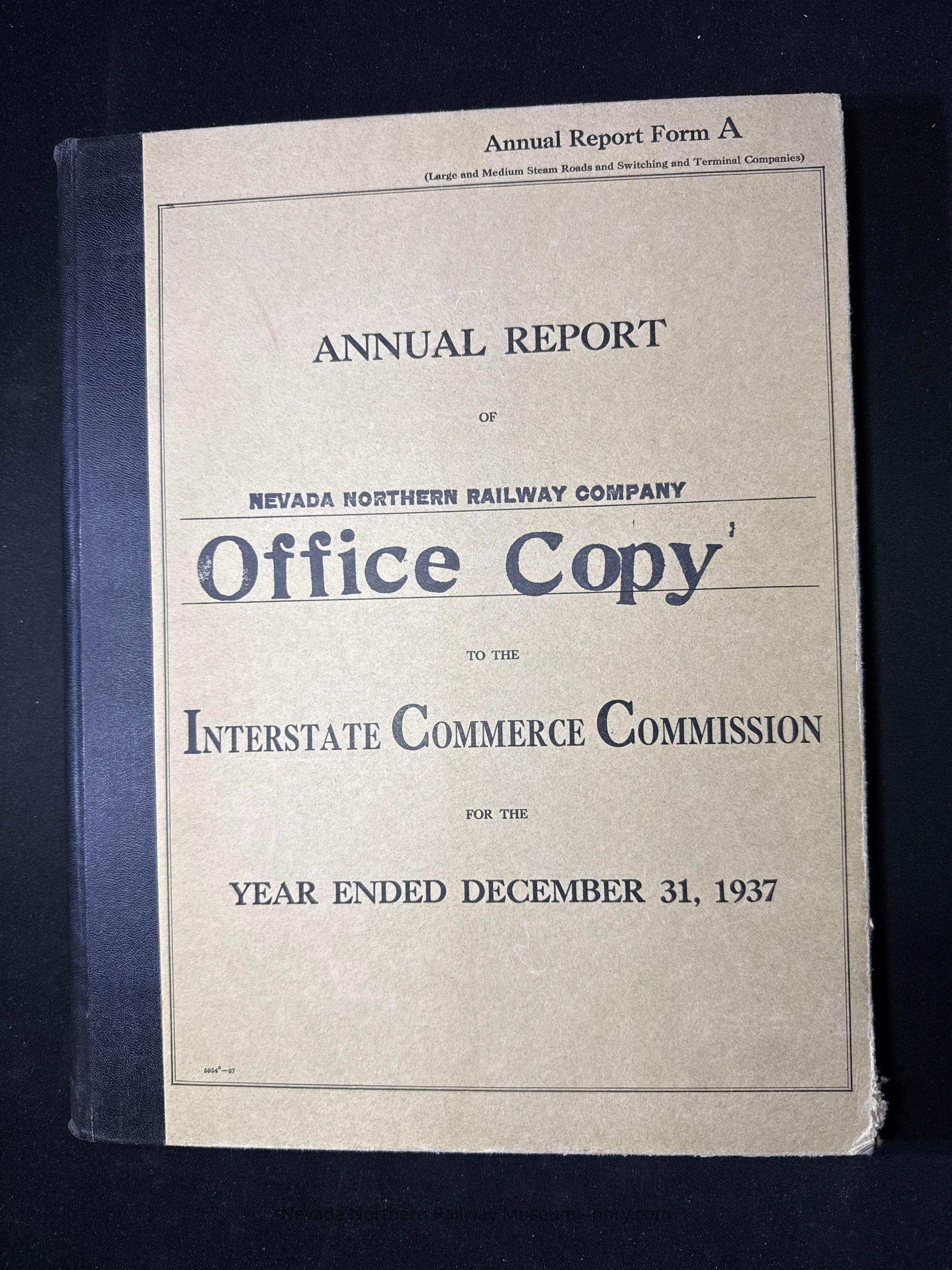 Annual report from the NNRy to the ICC for 1936, includes additional sheet of information between the pages, office file copy for the Auditor's office in East Ely.Creator