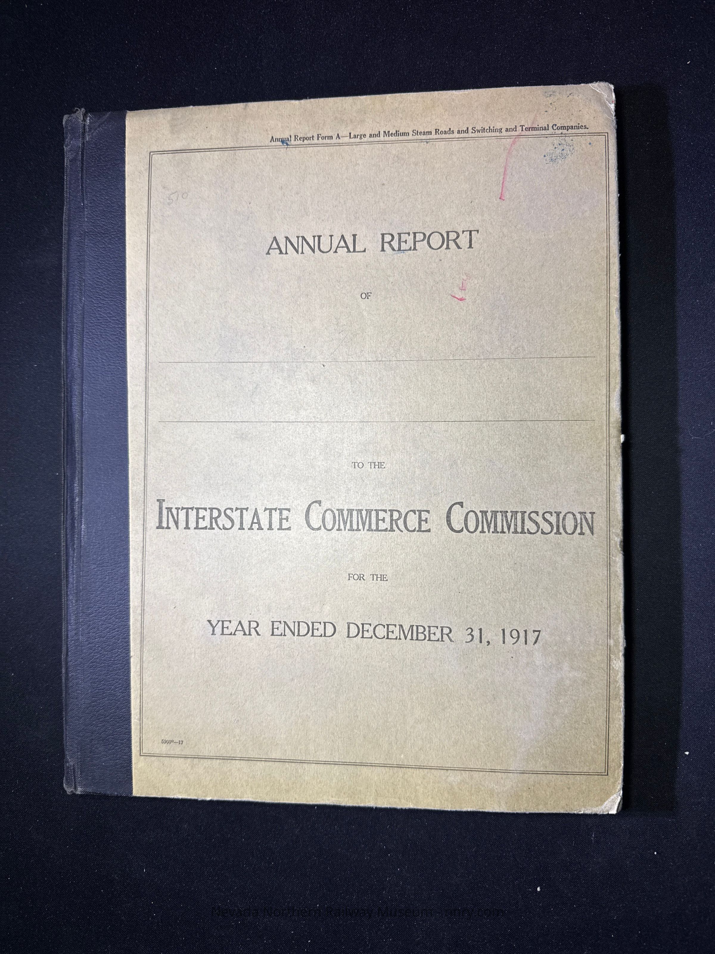 Annual report from the NNRy to the ICC for 1917, includes additional sheet of information between the pages, office file copy for the Auditor's office in East Ely.Creator