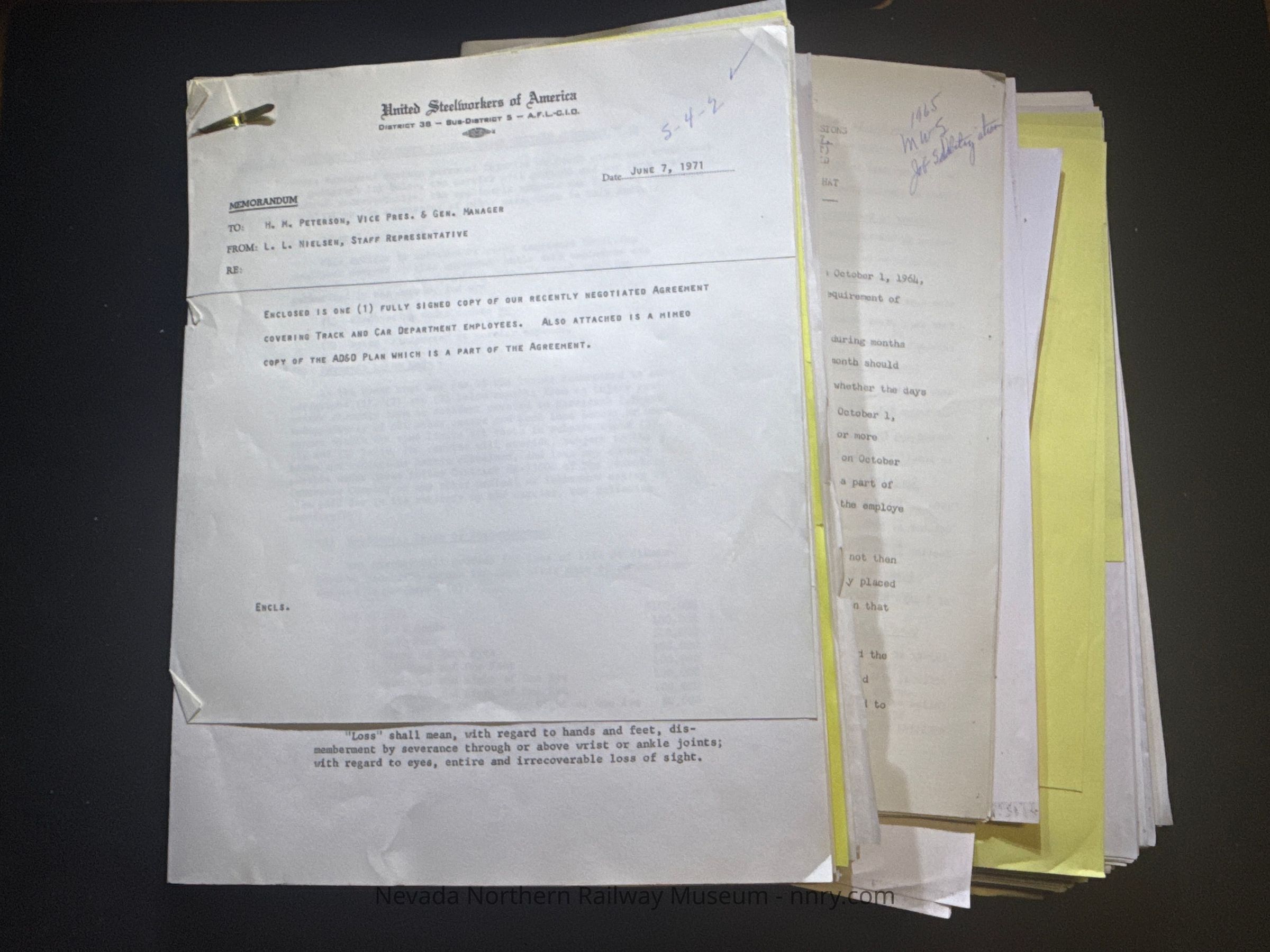 Various correspondence and other materials related to the United Steelworkers for the Maintenance of Way employees, 1971.Creator