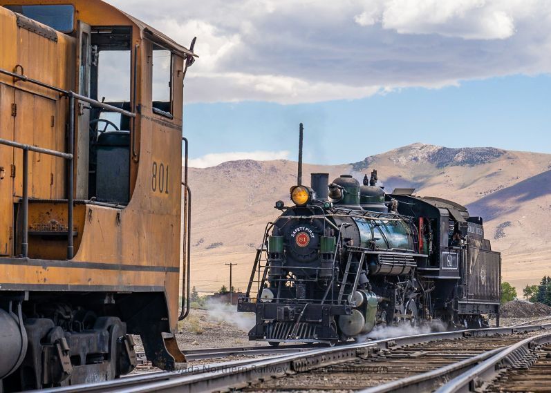 Locomotives #81 approaching #801 at the coaling tower, July 1, 2022.Photograph Details