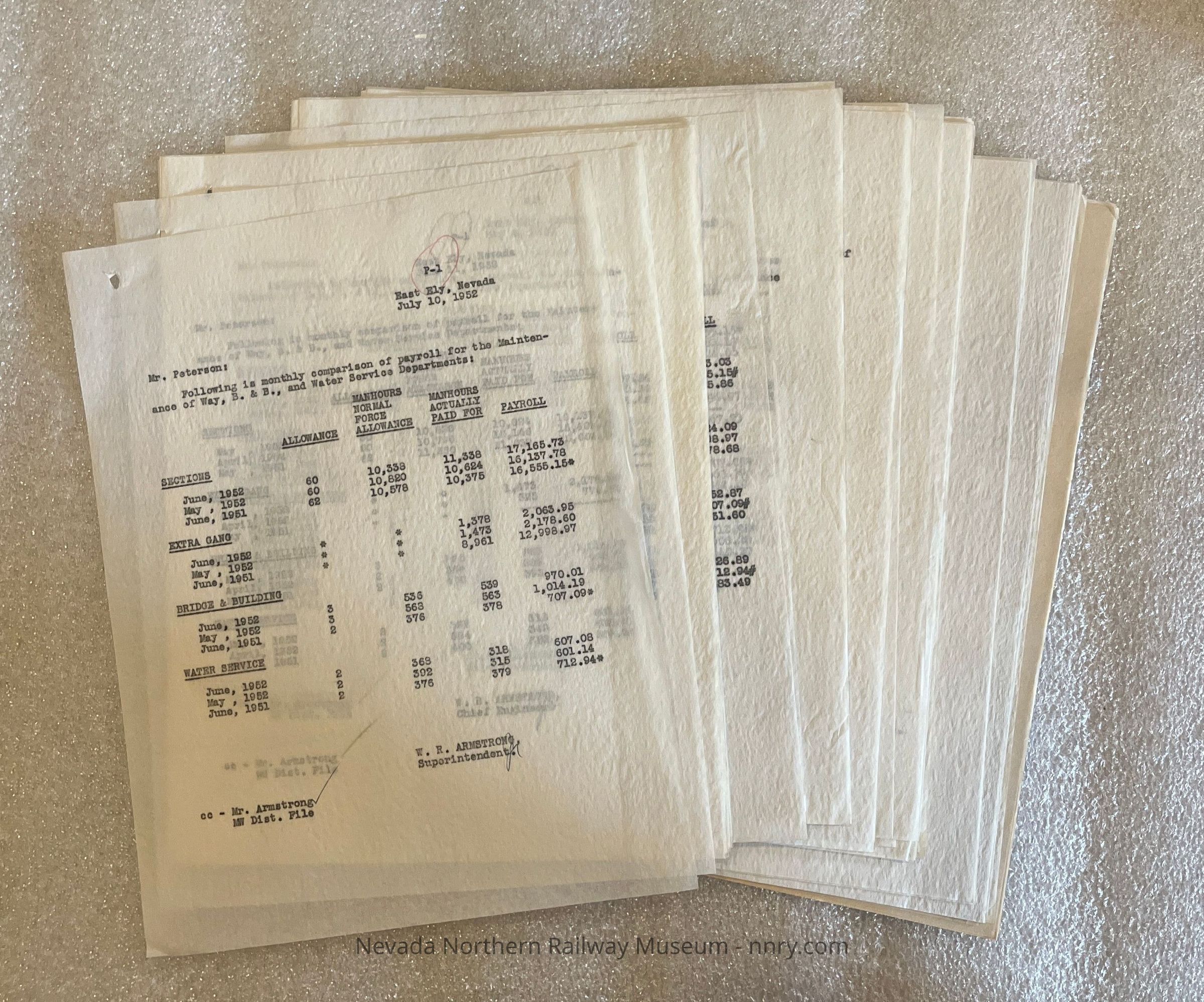 Payroll comparison reports for the Maintenance of Way department, 1948-1952.