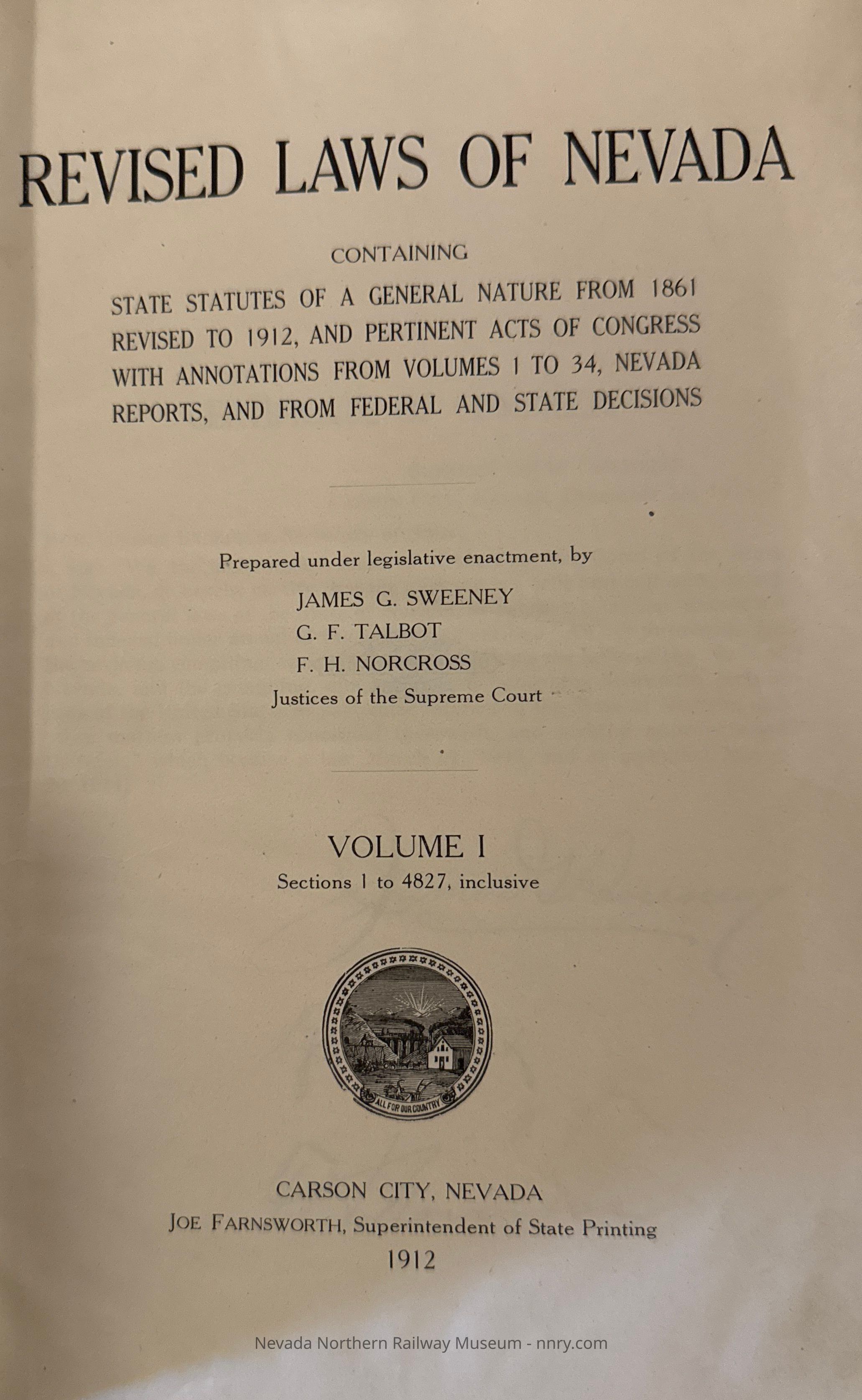 Revised Laws of Nevada 1912 Vol. 1Entry/Object ID