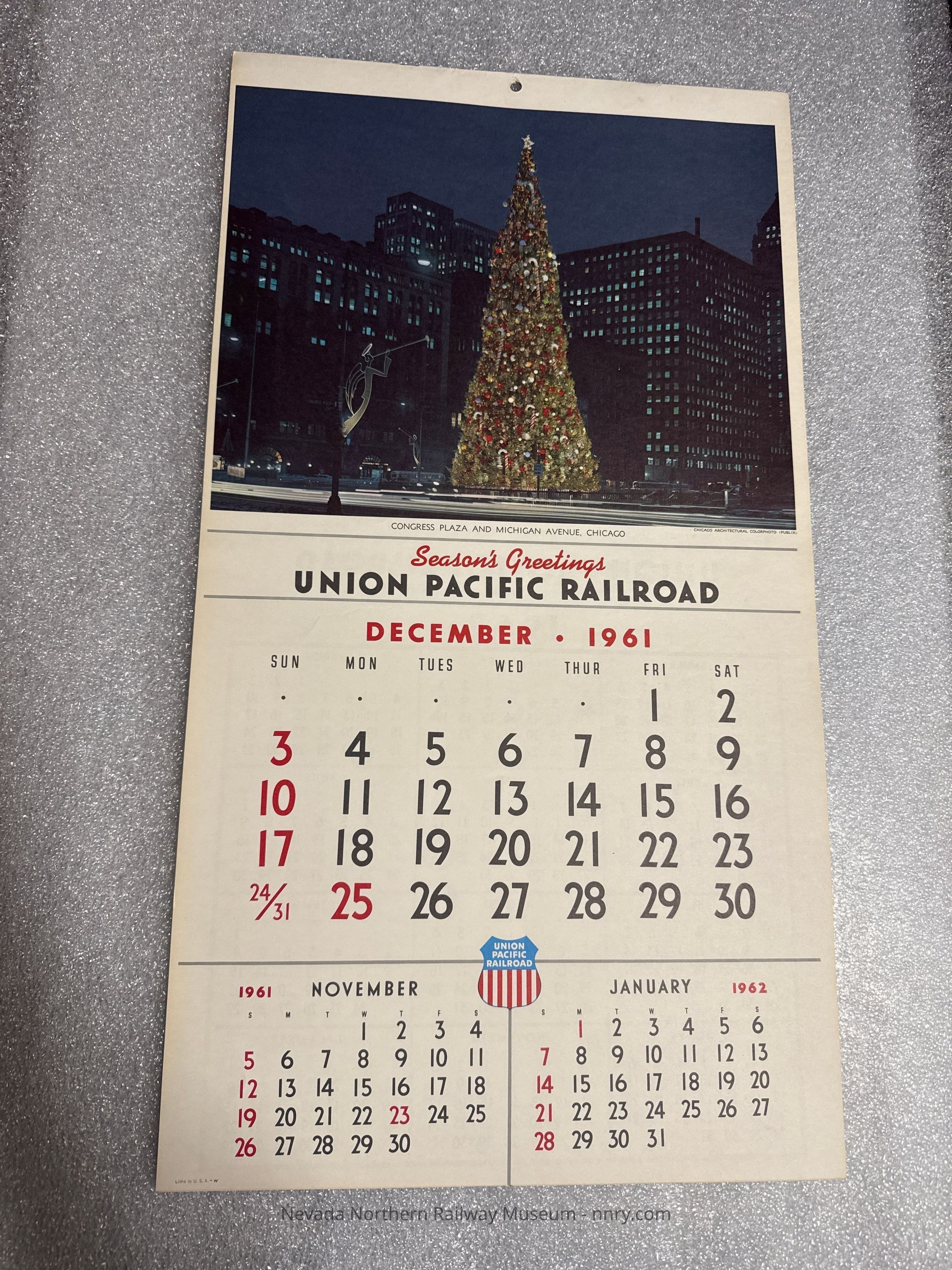 Union Pacific Railroad wall calendar for 1962, starting in December 1961.