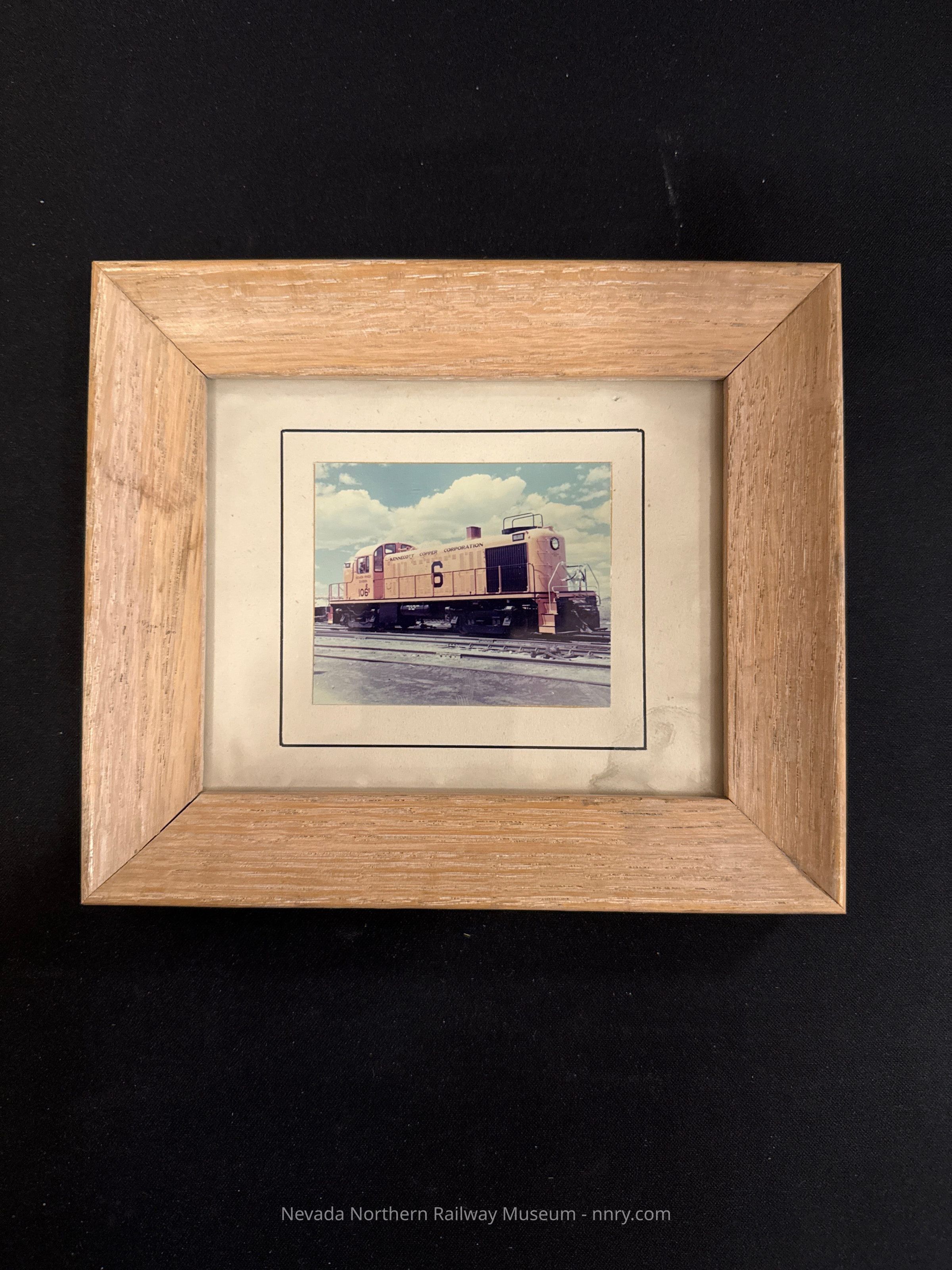 Locomotive #106, in a wooden frame, once hung in the general offices, tag on the back "Compliments of Irwin Fehr, photographer, Ely, Nevada."Photograph Details