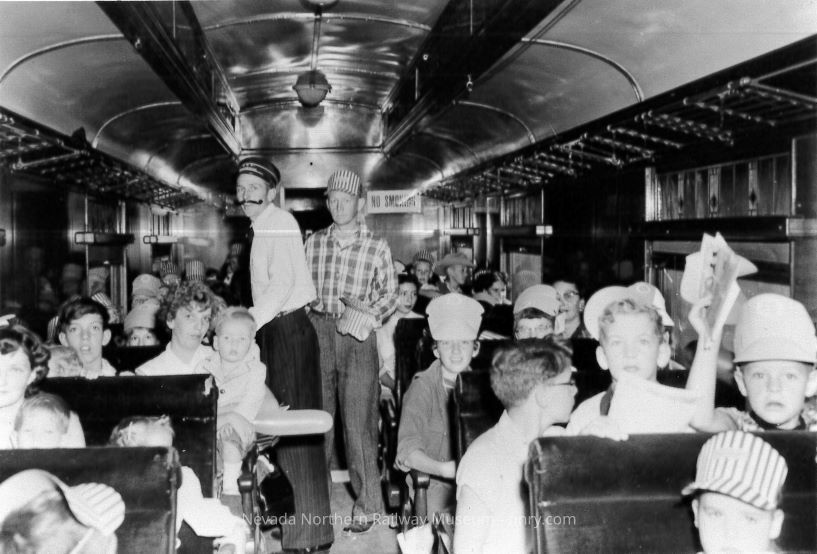 Passengers on the 50th Anniversary Train in coach #5, September 1956.