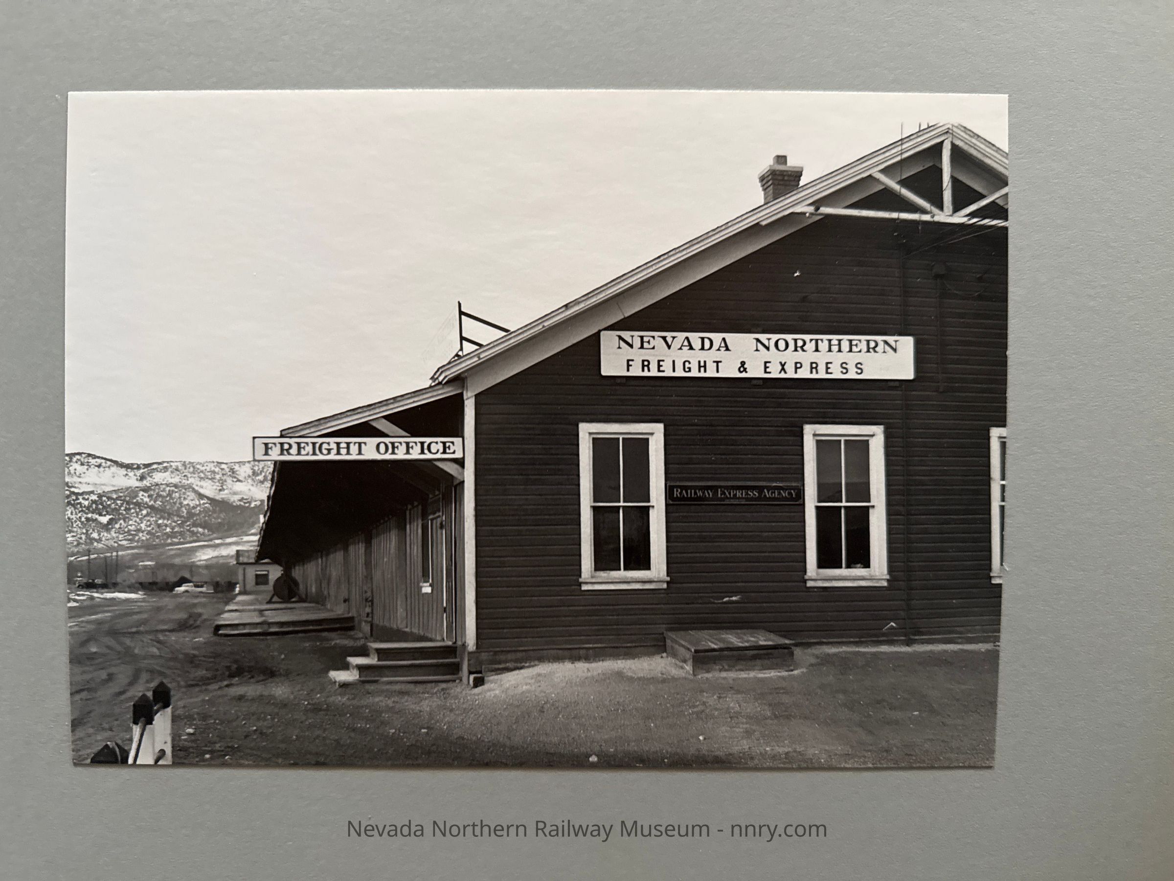 East Ely freight barn, sign for the Railway Express Agency on the wall. Believed to have hung in the general offices.