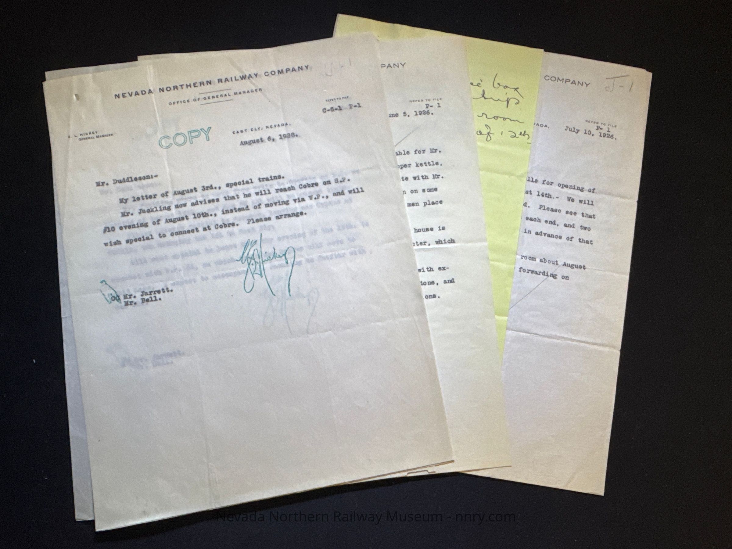 Correspondence regarding a visit by D.C. Jackling on the private car "Cyprus," August 7, 1926.Creator